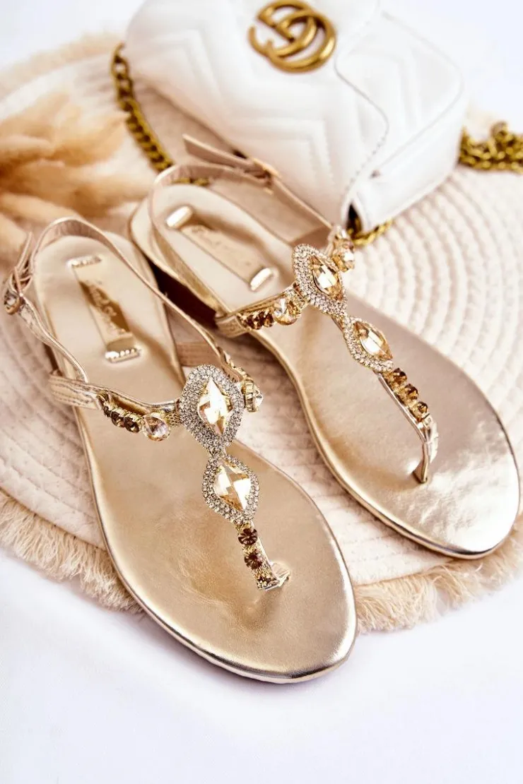 Modne damskie sandały w stylu japonek zostały wykonane z eko skóry. Buty te posiadają cienkie paski, co sprawia, że są niezwykle przewiewne. Zostały one przyozdobione dżetami w postaci mieniących się kryształów oraz cyrkonii. Model zapinany na sprzączkę z regulowanym paskiem, dzięki któremu możesz je odpowiednio dopasować do tęgości nogi. Sandały świetnie będą prezentować się z wieloma letnimi stylizacjami! Przy wyborze rozmiaru prosimy kierować się tabelą rozmiarów.
