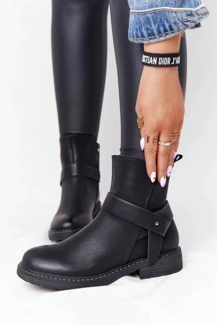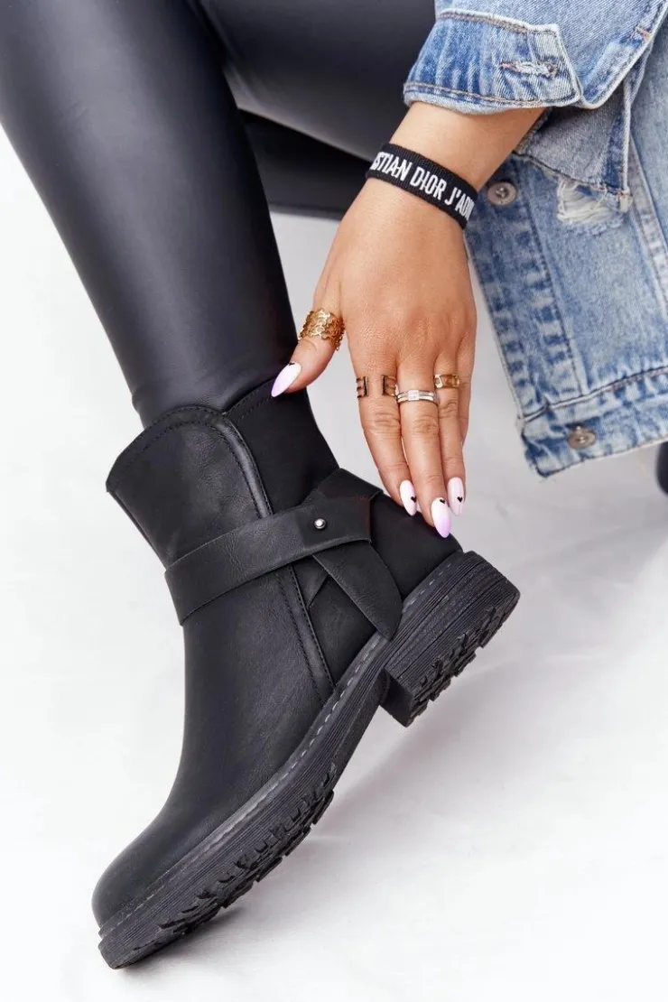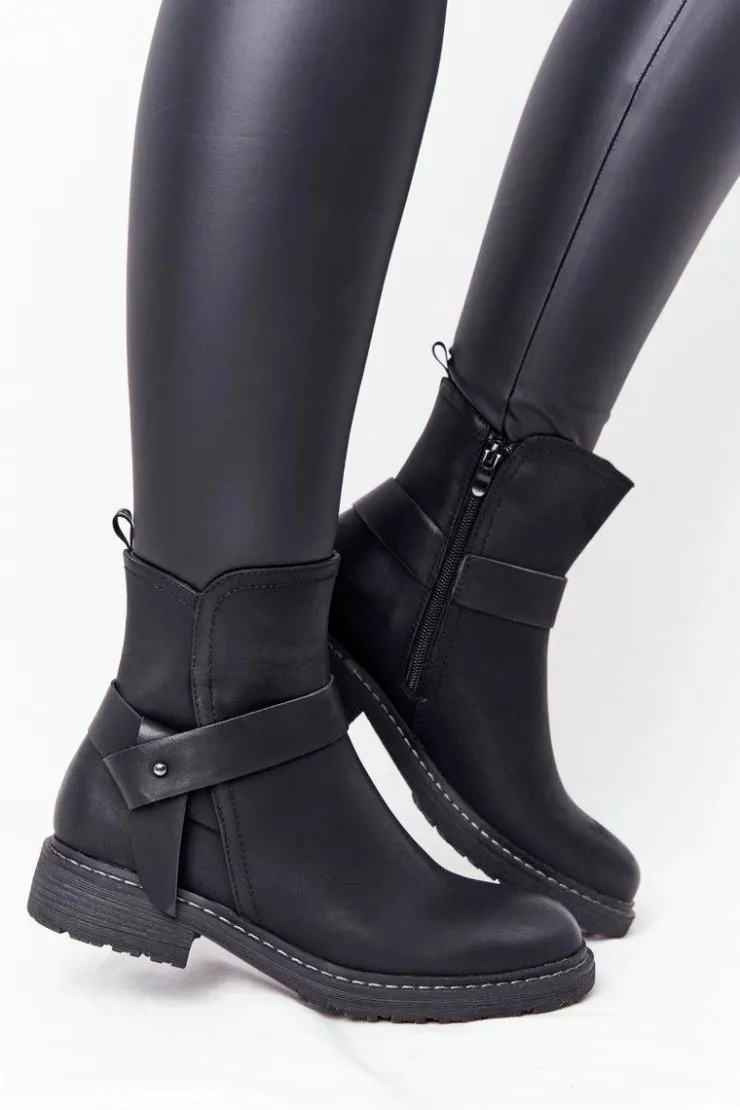 New Boto Damskie Ocieplane Botki Workery Czarne Alivia