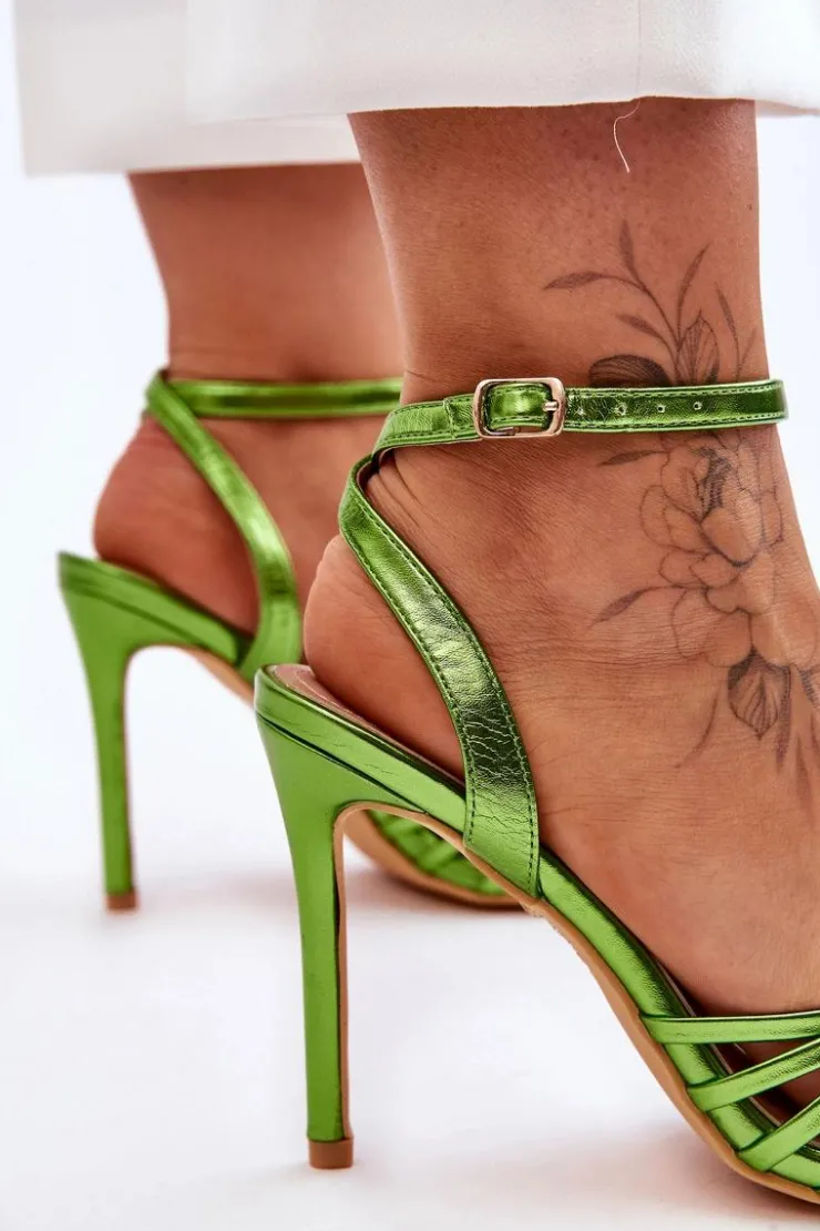 New Boto Damskie Sandały Na Szpilce Zielone My Darling Zielony