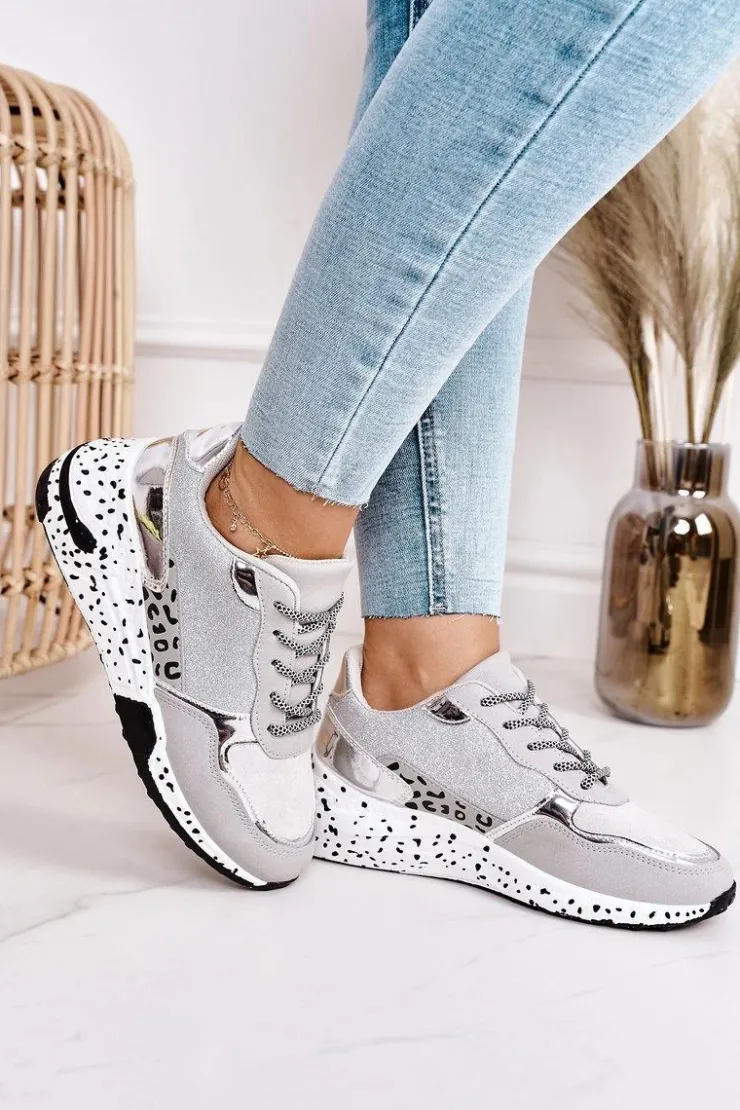 New Boto Damskie Sneakersy Na Koturnie Srebrne Avery