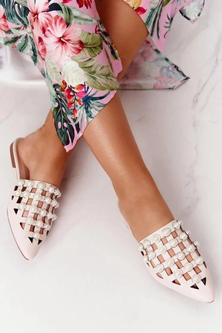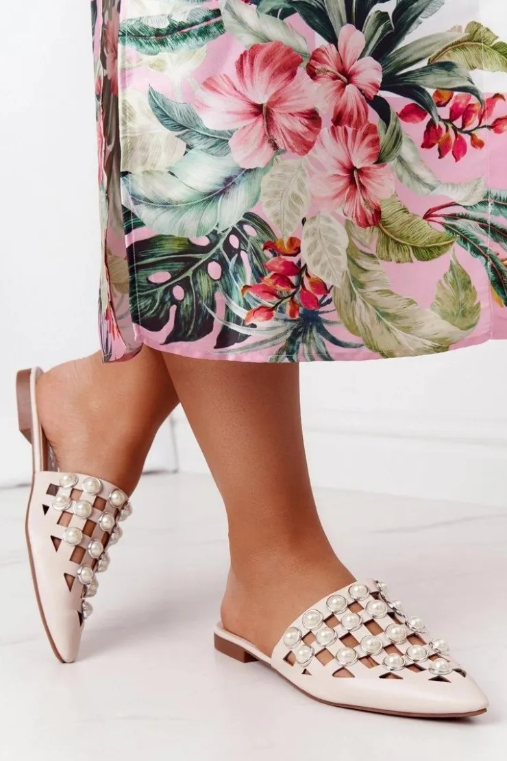 New Boto Klapki Z Cholewką I Perłami Beżowe Ripple