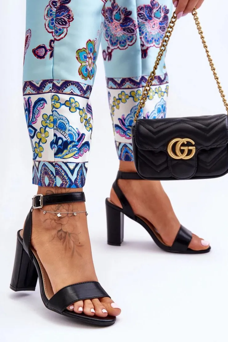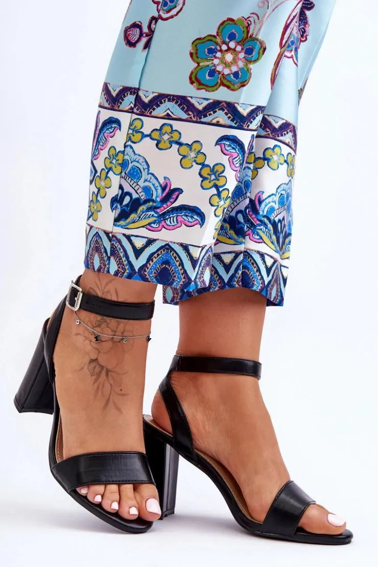 Damskie, klasyczne sandałki osadzono na obcasie w postaci stabilnego słupka. Model ten został wykonany z eko skóry. Buty te posiadają regulowany pasek zapinany na sprzączkę. Idealne na różnego rodzaju imprezy. Ten model powinien być Twój! Przy wyborze rozmiaru prosimy sugerować się tabelą rozmiarów.