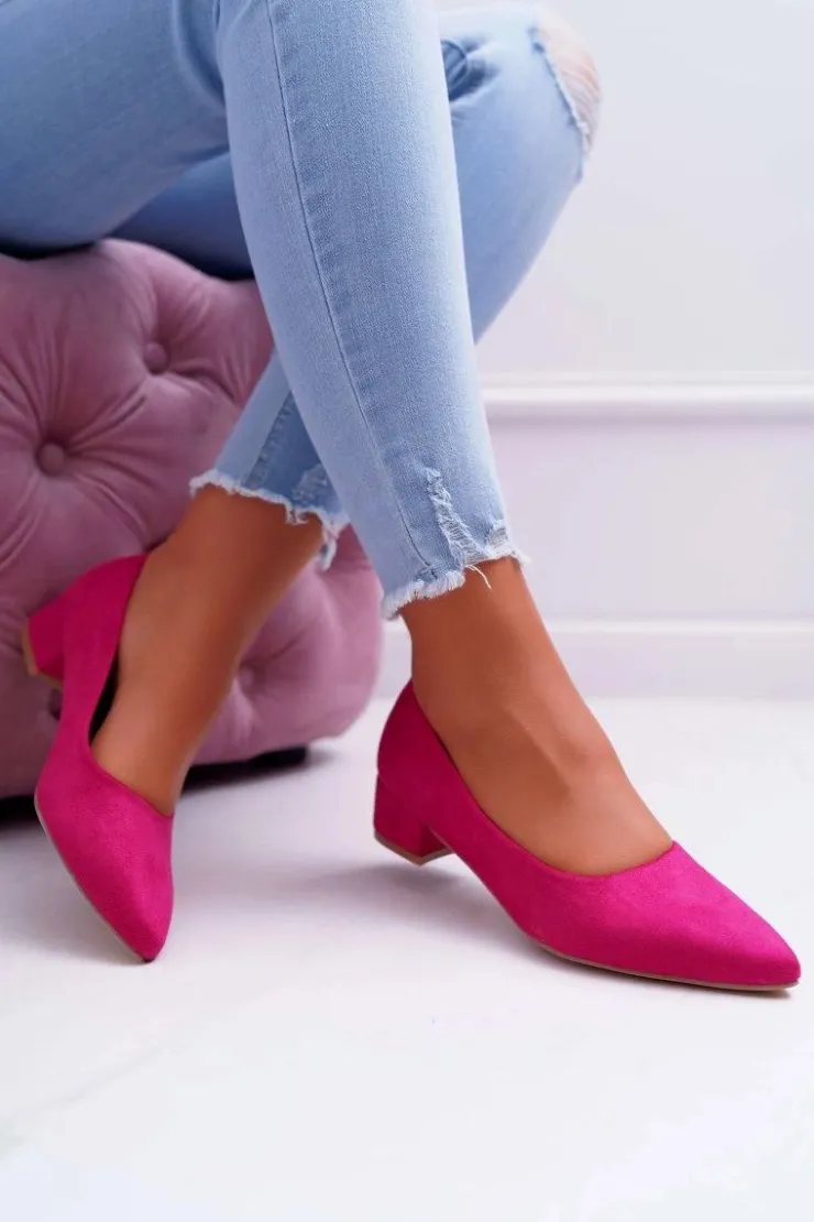Czółenka na niskim obcasie wykonane z eko zamszu. Modny fason dostępny w wielu pięknych kolorach! Przy wyborze rozmiaru prosimy kierować się tabelą rozmiarów