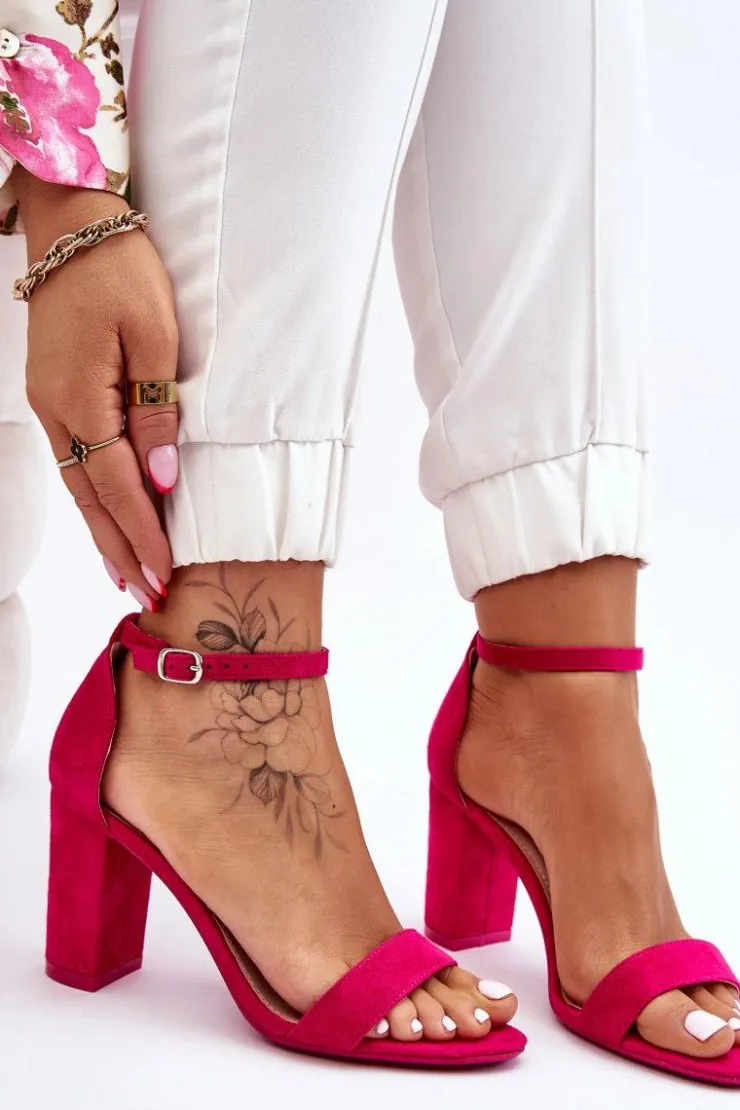 Klasyczne sandały damskie osadzone na obcasie w postaci stabilnego słupka. Buty wykonane zostały z eko zamszu. Komfort podczas użytkowania zapewni miękka, eko skórzana wkładka. Sandałki są zapinane na regulowany pasek ze sprzączką. Buty te posiadają odkryty, migdałowy nosek. Usztywniany zapiętek świetnie ustabilizuje stopę. Koniecznie sprawdź całą naszą kolekcję sandałek na obcasie! Przy wyborze rozmiaru prosimy sugerować się tabelą rozmiarów.