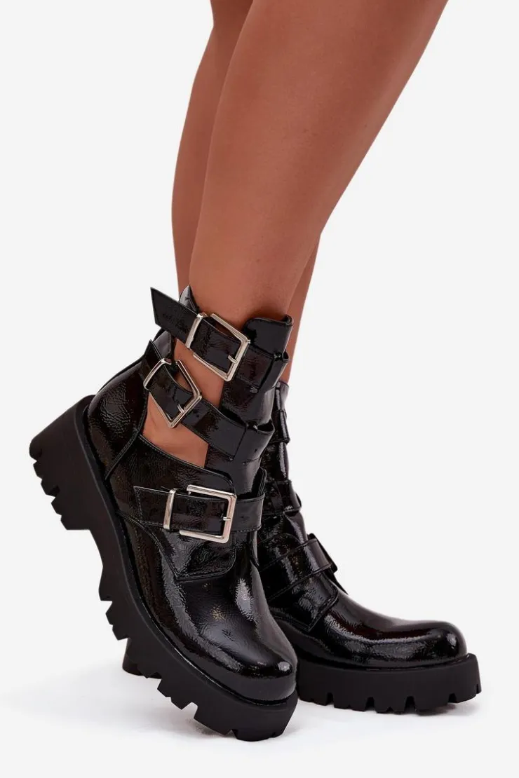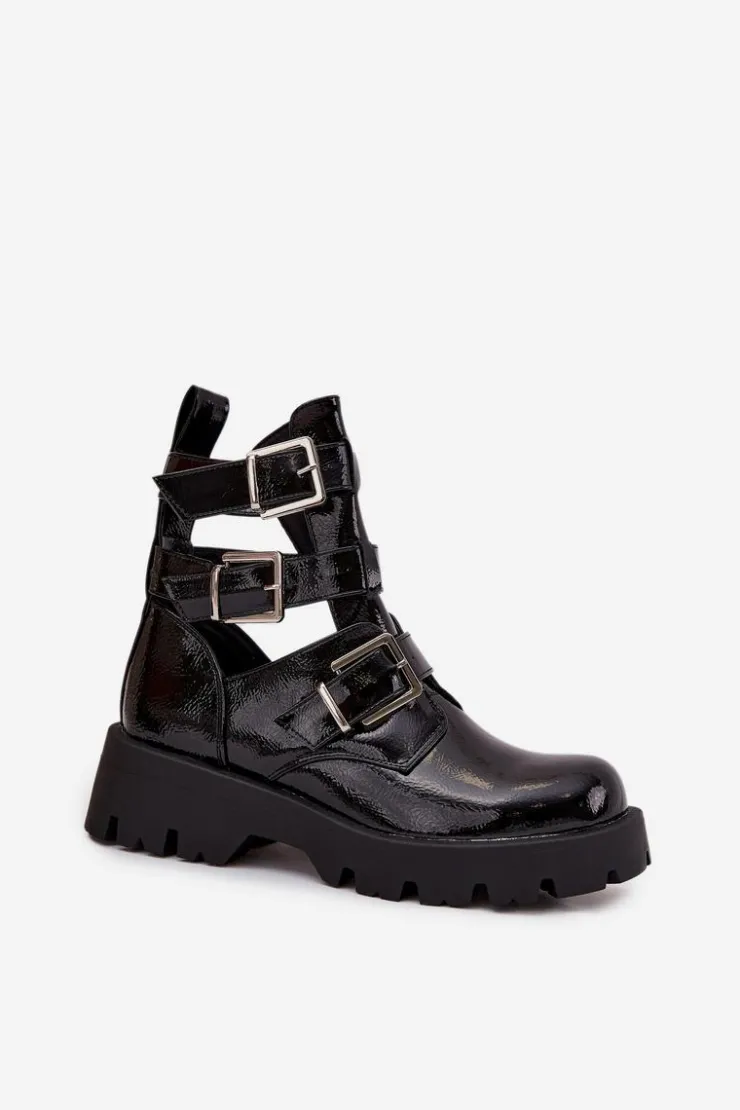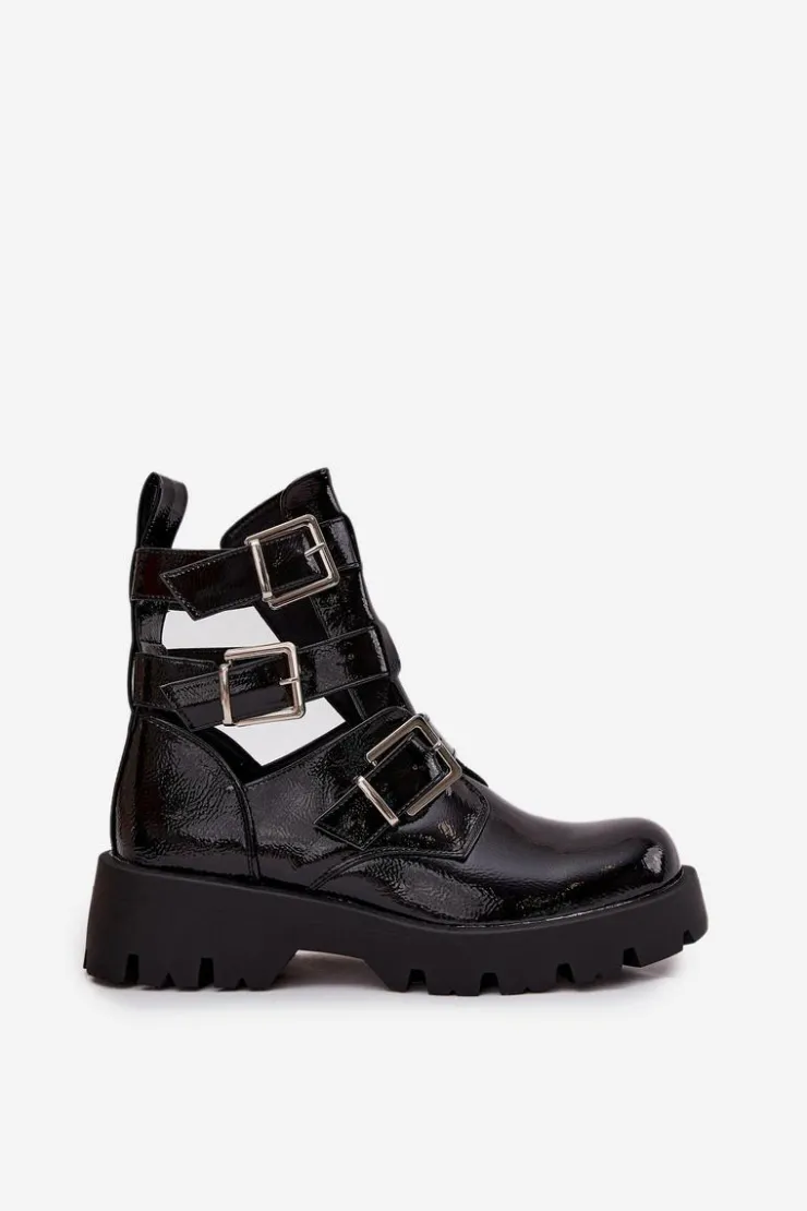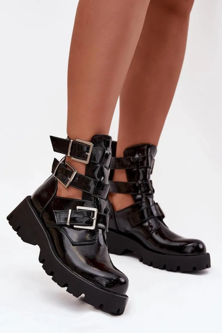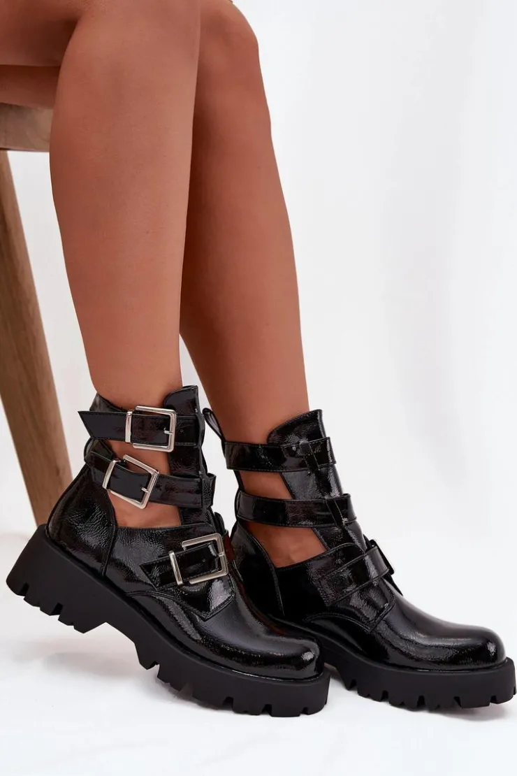 Damskie botki na płaskim obcasie to połączenie wygody i modnego wyglądu. Model wyróżnia się wycięciami, które dodają lekkości i nowoczesnego charakteru, a paski ze srebrnymi klamrami wprowadzają subtelny, elegancki detal. Zaokrąglone noski zapewniają komfort podczas chodzenia, a wsuwany fason umożliwia szybkie i wygodne zakładanie butów. Stylowy fason sprawia, że botki świetnie sprawdzą się zarówno w codziennych, casualowych zestawach, jak i w nieco bardziej wyjściowych stylizacjach, dodając im modnego akcentu. Przy wyborze rozmiaru prosimy sugerować się tabelą rozmiarów.
