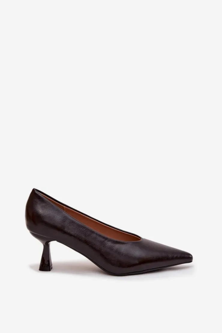 Eleganckie czółenka wykonane z eko skóry to klasyczna propozycja dla kobiet, które cenią styl i wygodę. Smukła linia buta ze szpiczastymi noskami pięknie wysmukla stopę i dodaje sylwetce lekkości, podkreślając kobiecy charakter obuwia. Model został osadzony na stabilnym obcasie typu rozszerzana szpilka, który łączy elegancki wygląd ze zwiększoną wygodą noszenia – zapewnia pewność kroku, a jednocześnie dodaje nowoczesnego akcentu. Dzięki swojemu ponadczasowemu fasonowi czółenka te doskonale sprawdzą się zarówno w stylizacjach biurowych, jak i podczas wyjątkowych okazji. Idealnie komponują się z sukienkami, spódnicami czy eleganckimi spodniami, stanowiąc niezawodne dopełnienie kobiecej garderoby. Przy wyborze rozmiaru prosimy kierować się tabelą rozmiarów.