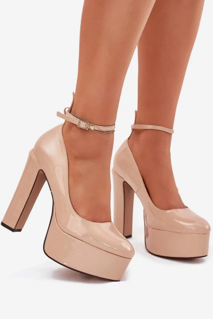 Czółenka z eko skóry to doskonałą propozycja na specjalne okazje. Model wyróżnia się wysokim obcasem typu słupek oraz platformą, które zapewniają wygodę i stabilność. Noski w kształcie migdała dodają im subtelności i kobiecego uroku. Dodatkowo czółenka posiadają zdejmowany paseczek zapinany na sprzączkę, co pozwala na łatwe dopasowanie i personalizację obuwia. Przy wyborze rozmiaru prosimy kierować się tabelą rozmiarów