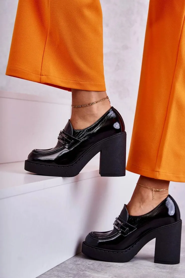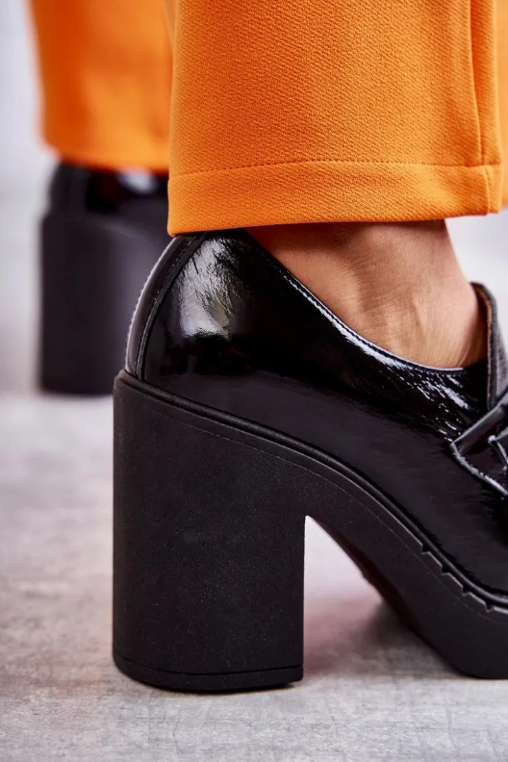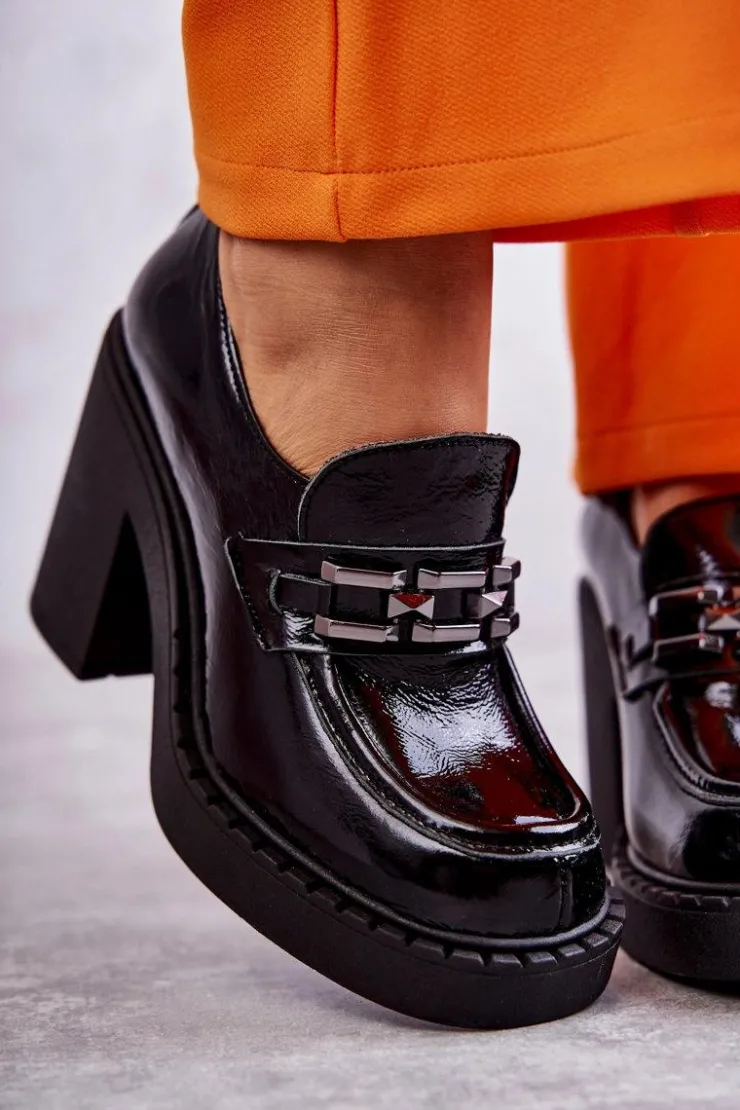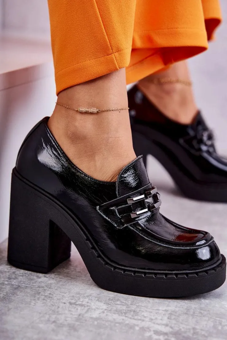 Cudowne półbuty na obcasie w postaci masywnego słupka z platformą. Cholewka oraz wkładka wykonane ze skóry naturalnej. Podeszwa wykonana z gumowego tworzywa jest antypoślizgowa. Ozdoba na przodzie dodaje tym butom elegancji. Model ten posiada usztywniany zapiętek, który dodatkowo stabilizuje stopę. Pod językiem znajduje się gumka, która sprawi, że but będzie idealnie dopasowany do stopy. Przy wyborze rozmiaru prosimy sugerować się tabelą rozmiarów.