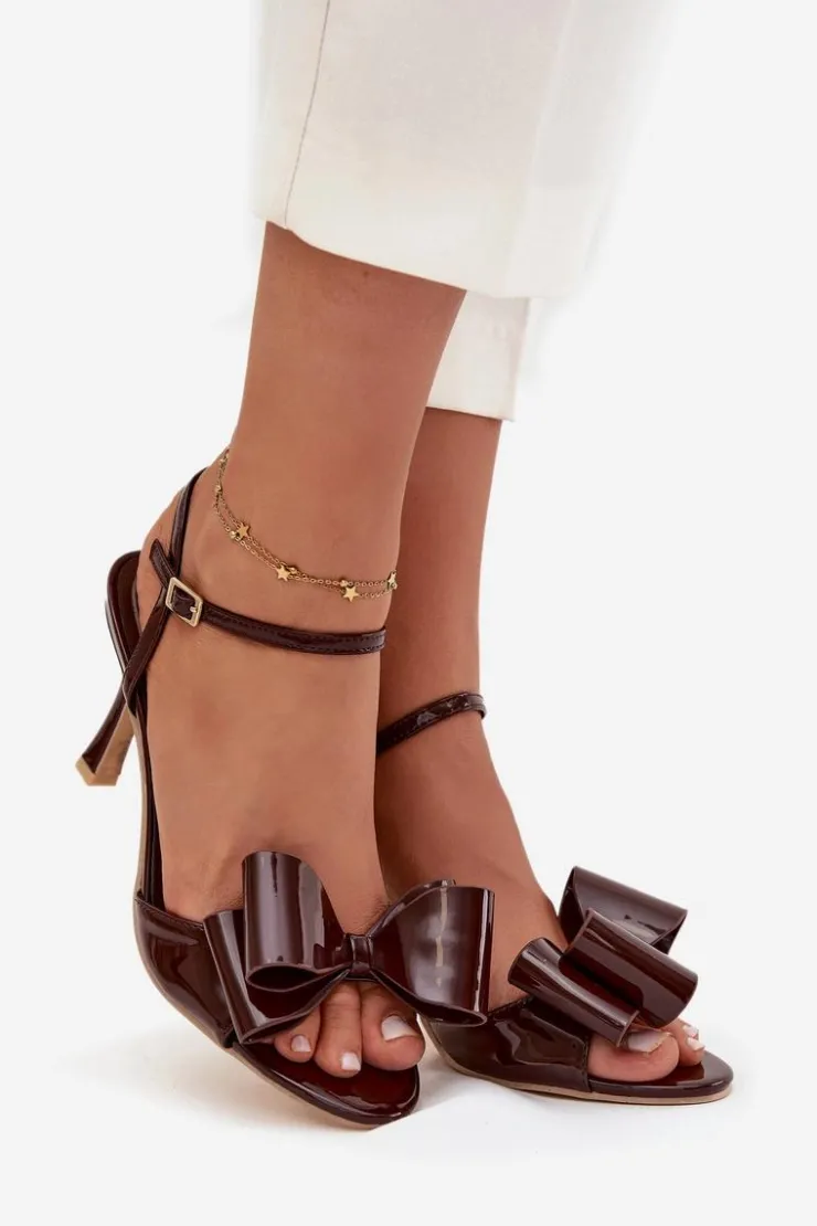 Sandały damskie wykonane z wysokiej jakości eko skóry to połączenie elegancji i kobiecego stylu. Osadzone na smukłej szpilce pięknie wydłużają sylwetkę i dodają lekkości każdej stylizacji. Regulowany pasek zapinany na sprzączkę umożliwia idealne dopasowanie do stopy. Uwagę przyciąga ozdobna kokarda umieszczona z przodu, która nadaje subtelnego, dziewczęcego uroku. To model, który doskonale sprawi się zarówno na wyjątkowe okazje, takie jak przyjęcia czy uroczystości, jak i do eleganckich, wieczorowych stylizacji. Przy wyborze rozmiaru prosimy sugerować się tabelą rozmiarów.