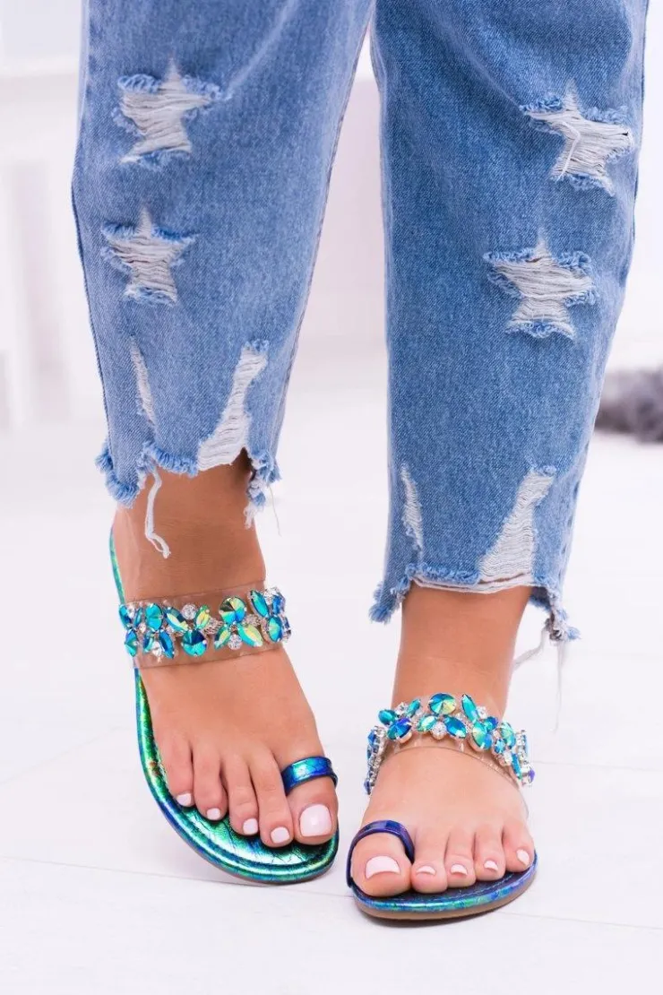 Jedne z najmodniejszych klapek jakie mogłaś sobie wymarzyć, dostępne są w naszej kolekcji! Model Tanut od Lu Boo wyróżnia się wysoką jakością wykonania oraz niecodziennym stylem. Przeźroczysty pasek zdobiony mieniącymi się cekinami sprawi, że będziesz mogła je nosić nie tylko do letnich stylizacji ale także podczas bardziej szykownych wyjść. Idealnie leżą na nodze dzięki paskowi na dużym palcu.