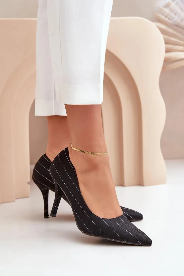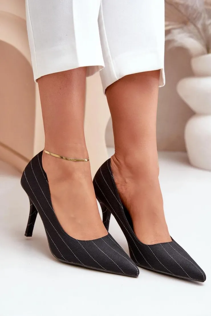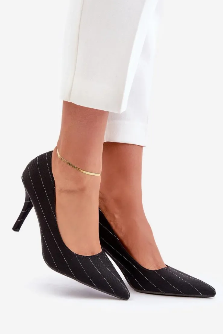 Damskie szpilki wykonane z wysokiej jakości materiału tekstylnego, które doskonale łączą elegancję i wygodę. Model z klasycznym, spiczastym noskiem optycznie wysmukla stopę, a miękka wkładka gwarantuje komfort nawet podczas długiego noszenia. Idealne na specjalne okazje lub dopełnienie stylowych, wieczorowych stylizacji. Przy wyborze rozmiaru prosimy sugerować się tabelą rozmiarów.