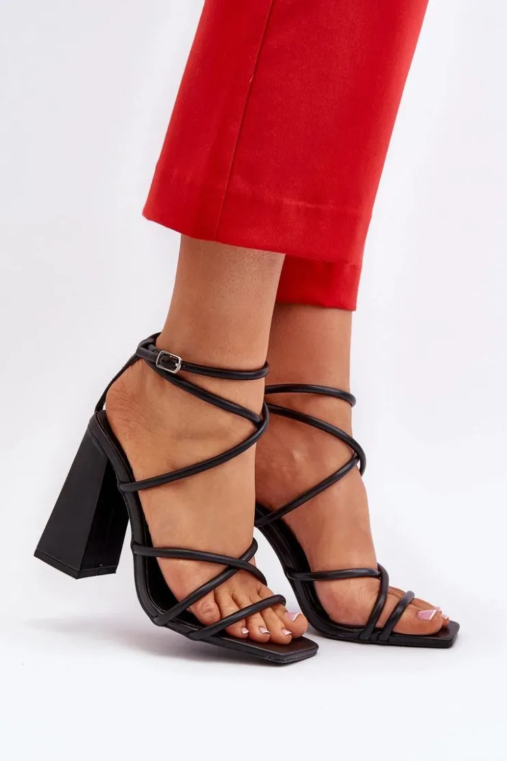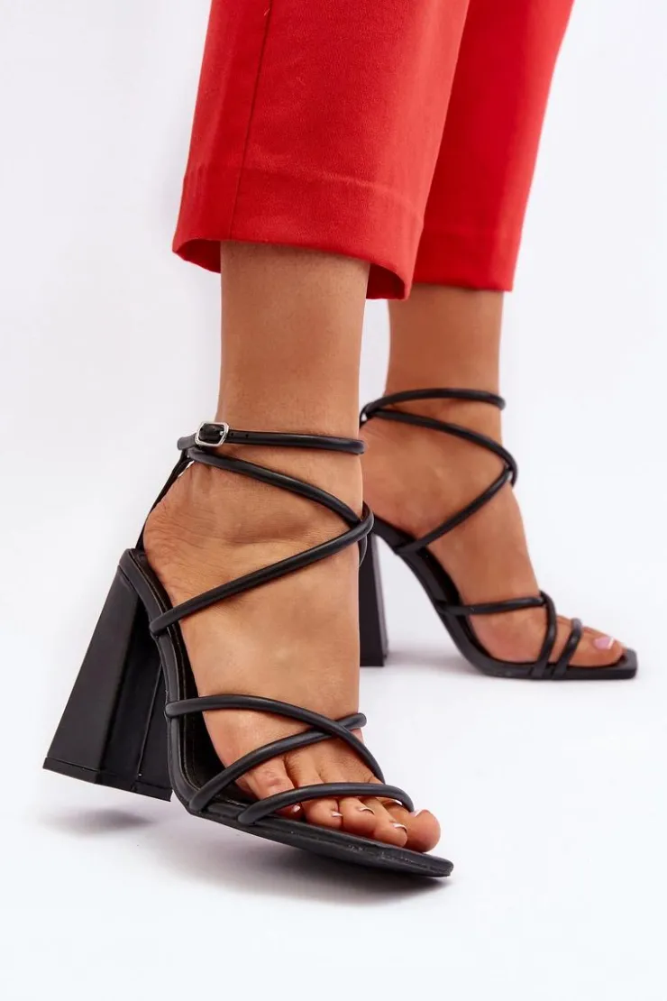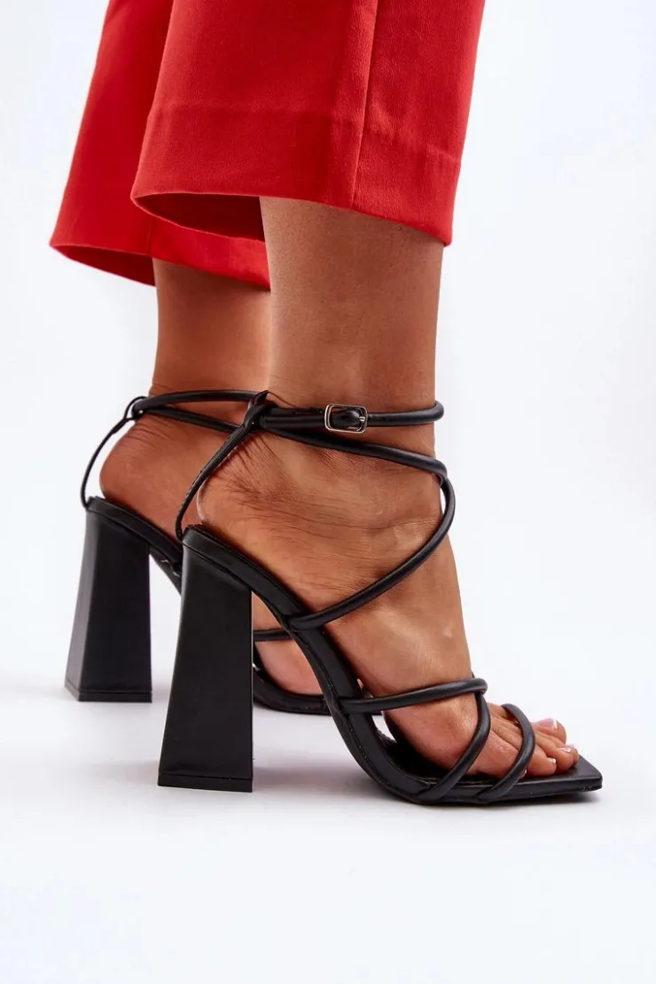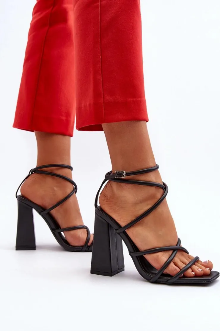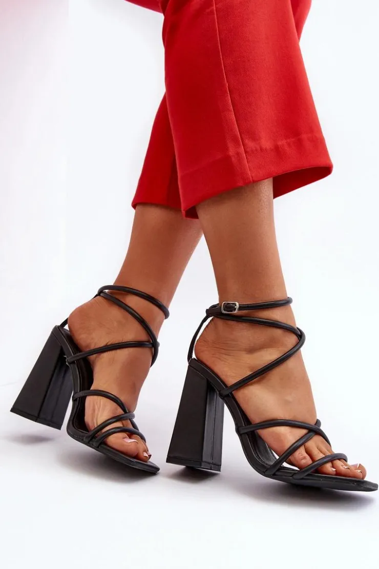 Cudowne sandałki damskie zostały wykonane z eko skóry. Ten ciekawy fason pięknie prezentuje się na nodze. Miękka wkładka z eko skóry zapewni komfort przez dłuższy czas. Obcas w postaci słupka szerszego u dołu. Sandałki posiadają regulowany pasek zapinany na sprzączkę. Idealne na imprezę, uroczystość rodzinną czy randkę! Koniecznie powinnaś je mieć! Przy wyborze rozmiaru prosimy sugerować się tabelą rozmiarów.