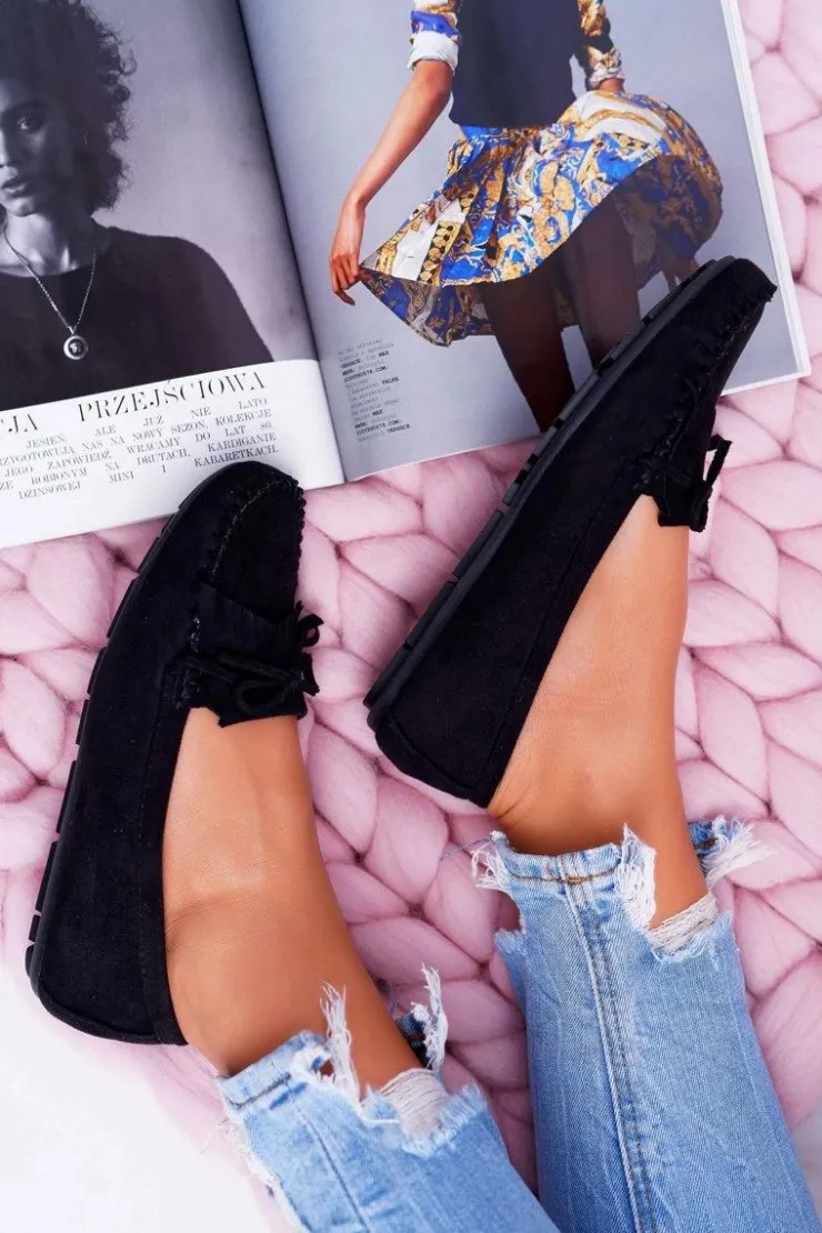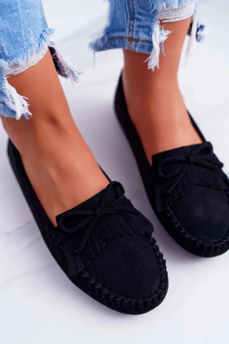 New Boto Mokasyny Damskie Zamszowe Czarne Espanto