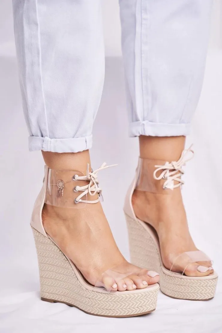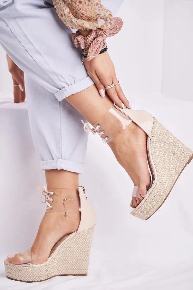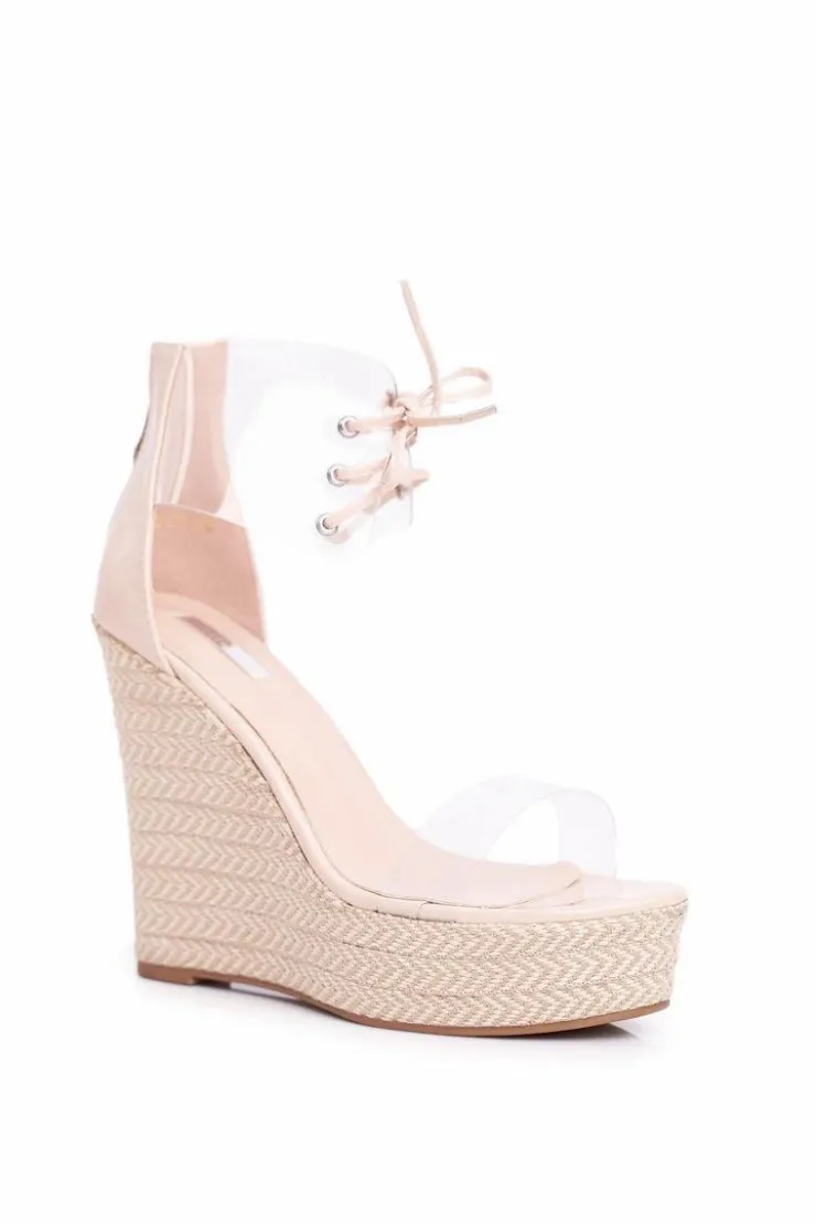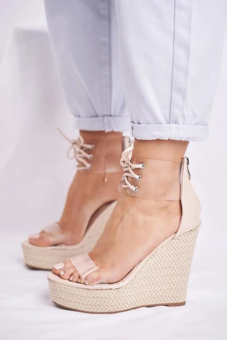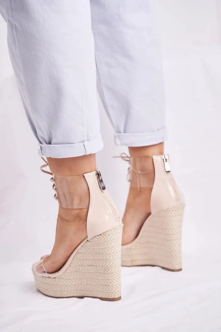New Boto Sandałki Damskie Na Koturnie Beżowe Beautiful Way