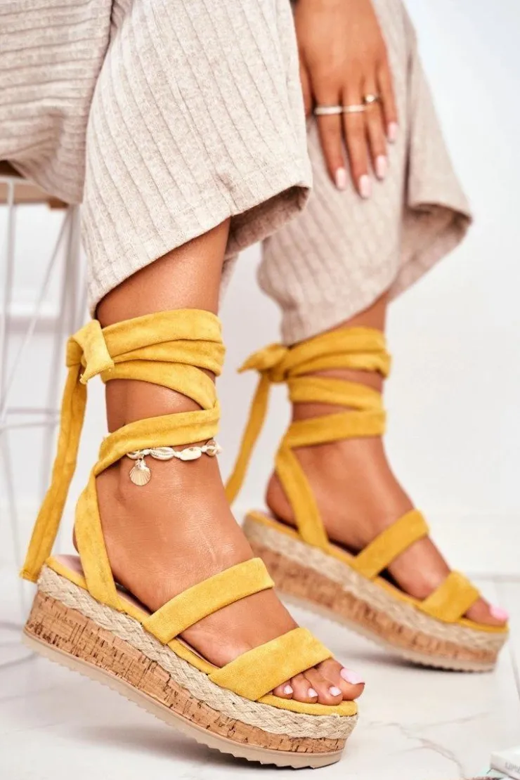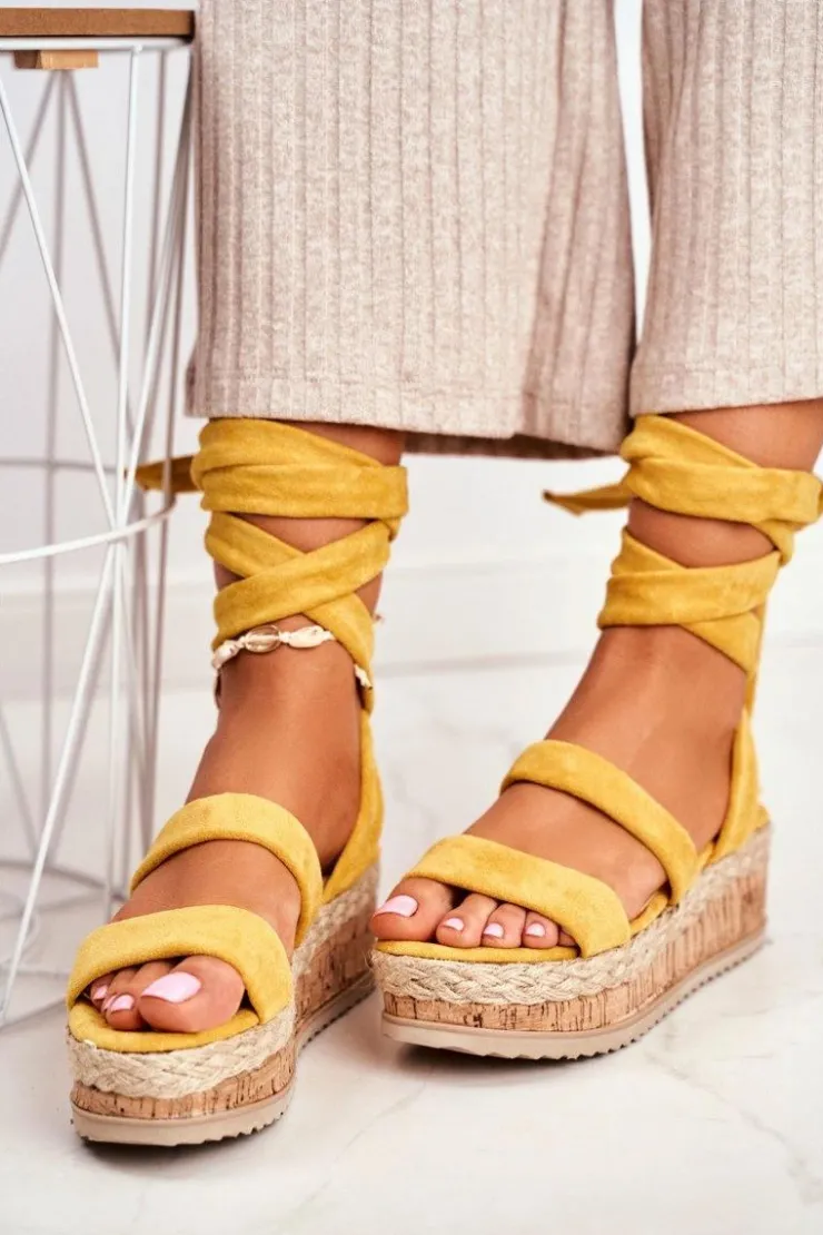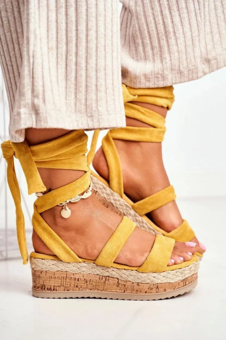 New Boto Sandały Damskie Na Platformie Wiązane Żółte La Favorite