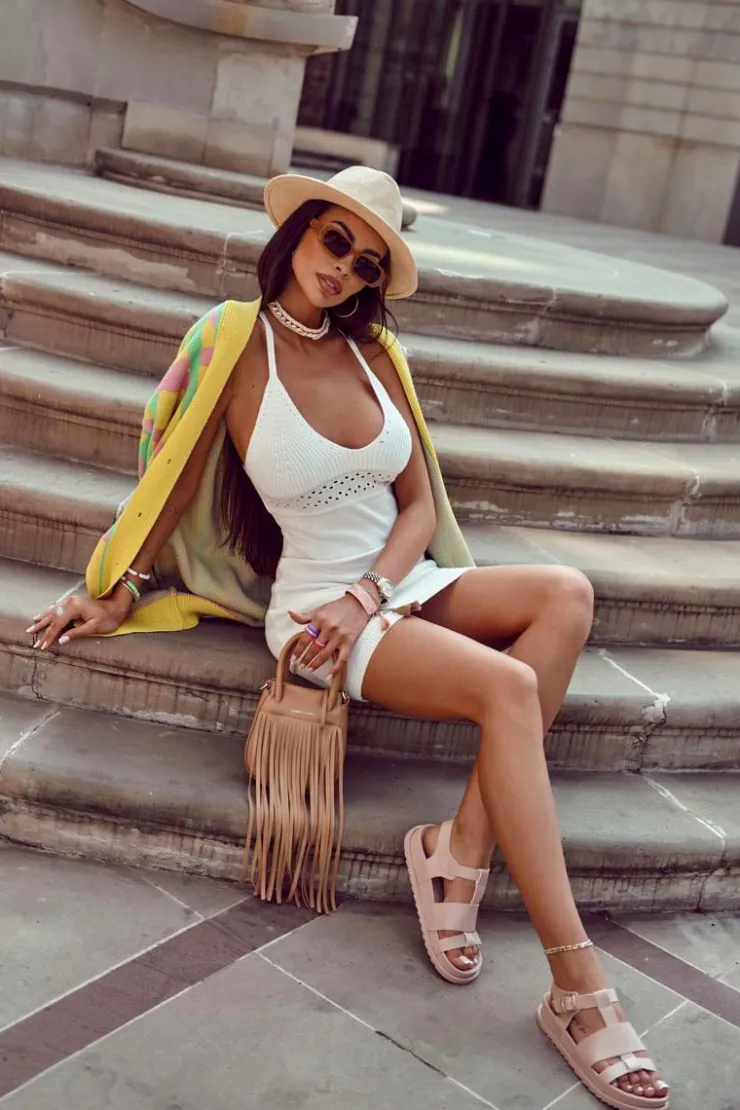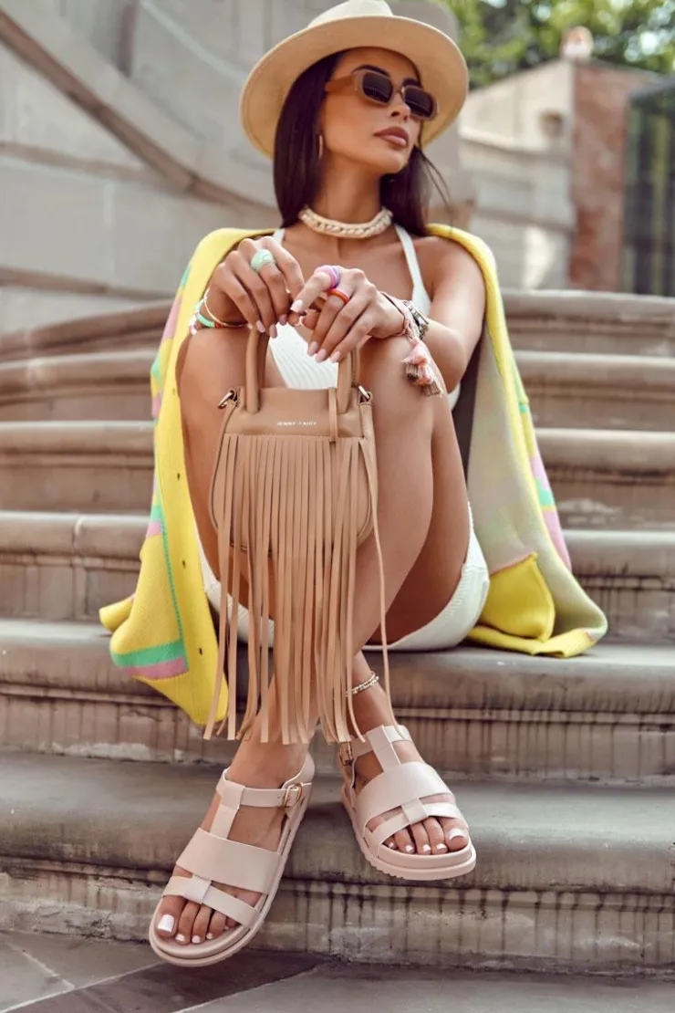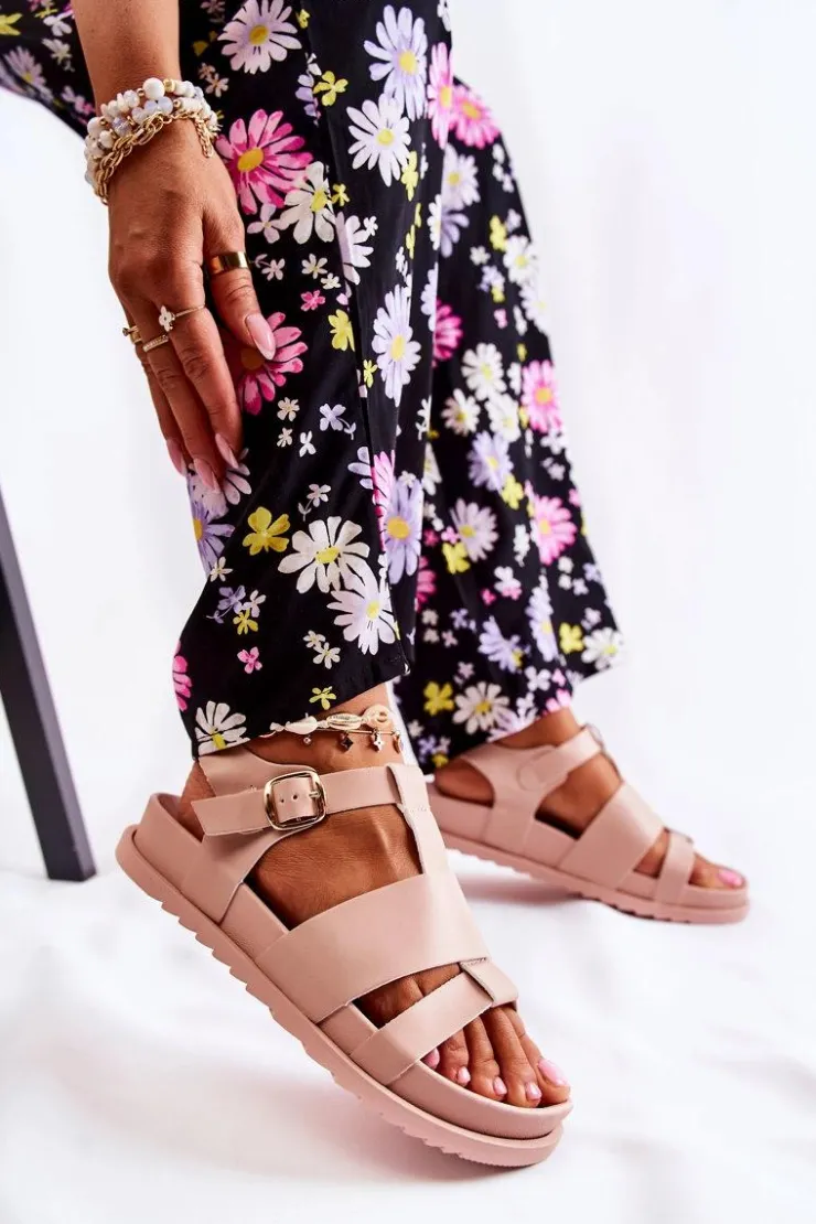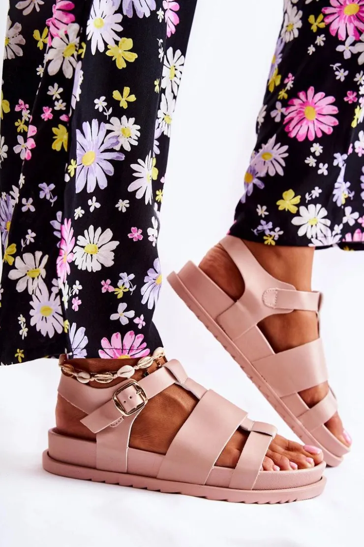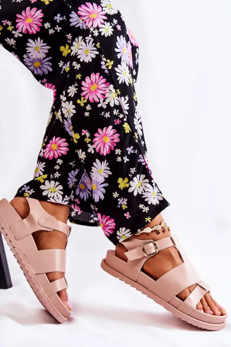 Modne oraz przewiewne sandały wykonane z eko skóry. Zapinane na regulowany pasek ze sprzączką. Sandałki posiadają odkryty, zaokrąglony nosek oraz odkrytą piętę. Miękka wkładka z tworzywa sztucznego zapewni wygodę podczas użytkowania. Dodatkowo wkładka jest profilowana. Platforma sprawia, że buty są niezwykle stabilne. Te sandałki to idealny fason na upalne dni. Świetnie będą prezentować się z zarówno ze spodniami, jak i sukienkami. Przy wyborze rozmiaru prosimy sugerować się tabelą rozmiarów.