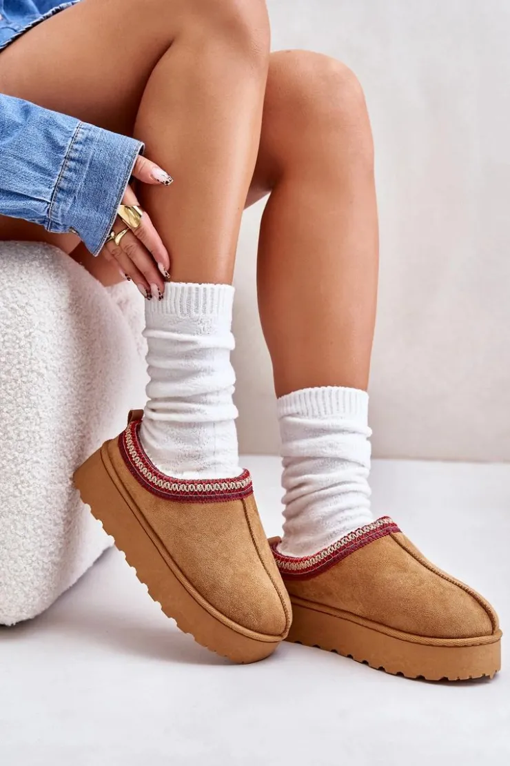 Damskie śniegowce z ozdobną lamówką. Wykonane z eko zamszu, to idealny wybór na chłodniejsze dni. Osadzone na platformie, zapewniają nie tylko styl, ale także komfort i izolację od zimna. Wnętrze butów jest ocieplone miękkim futerkiem, co gwarantuje ciepło i wygodę podczas noszenia. Te śniegowce to połączenie funkcjonalności i modnego wyglądu, doskonałe na zimowe spacery. Przy wyborze rozmiaru prosimy kierować tabelą rozmiarów.