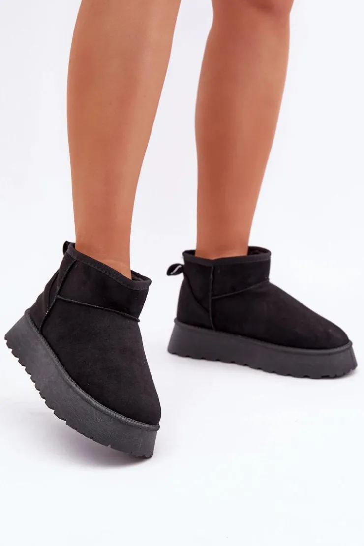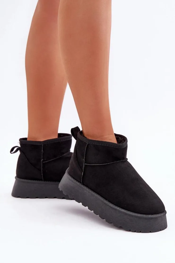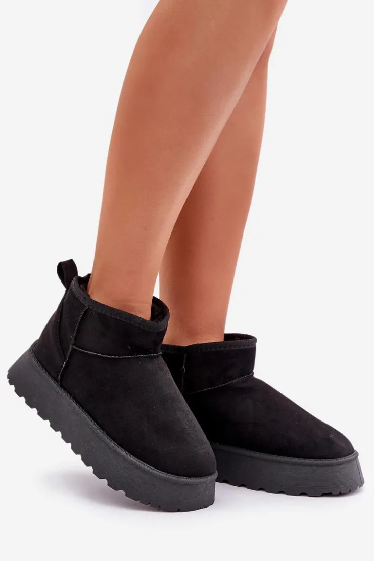 Stylowe śniegowce damskie wykonane z eko zamszu, które zapewnią komfort i ciepło w chłodne dni. Osadzone na modnej platformie, idealnie izolują od zimnego podłoża. Wnętrze ocieplane miękkim futerkiem, które zapewni ciepło w mroźne dni. Doskonałe połączenie wygody i stylowego wyglądu na zimowe dni. Przy wyborze rozmiaru prosimy kierować tabelą rozmiarów.
