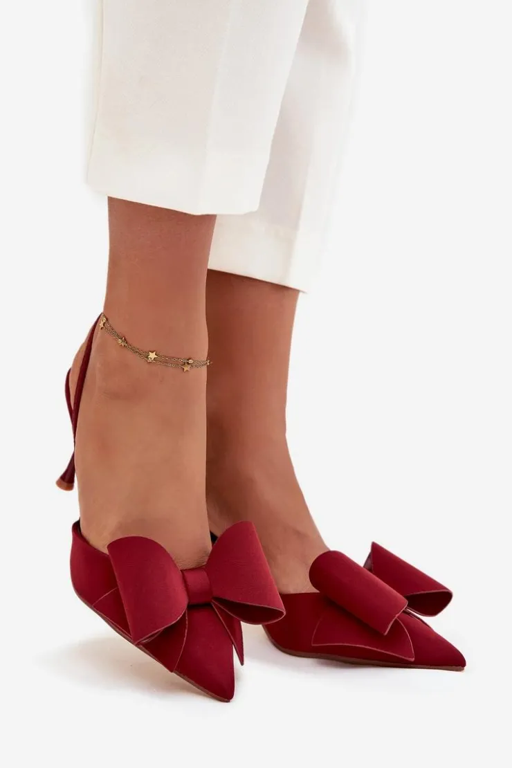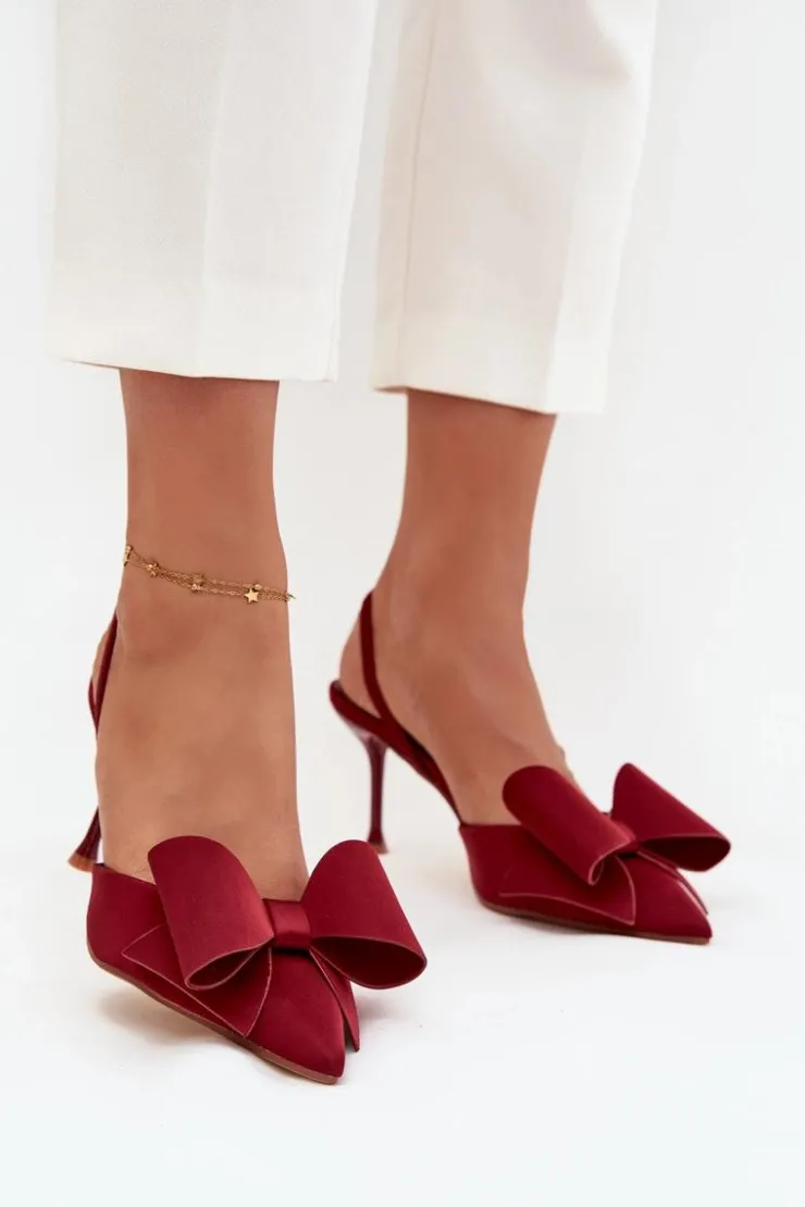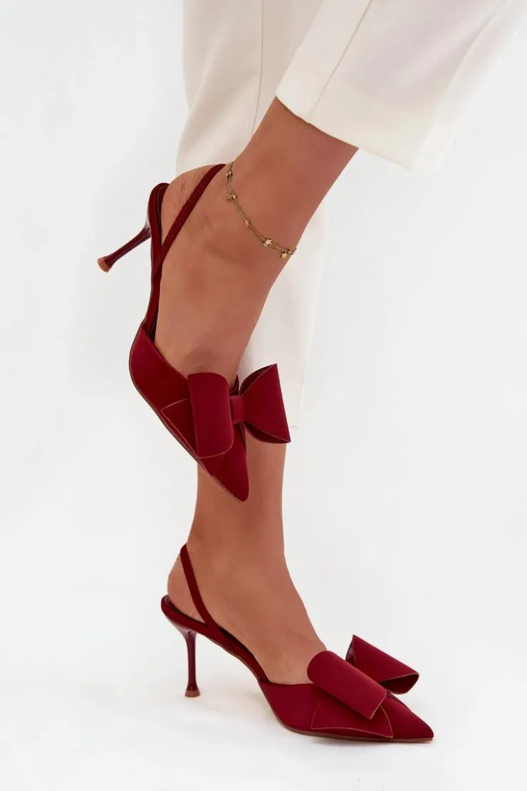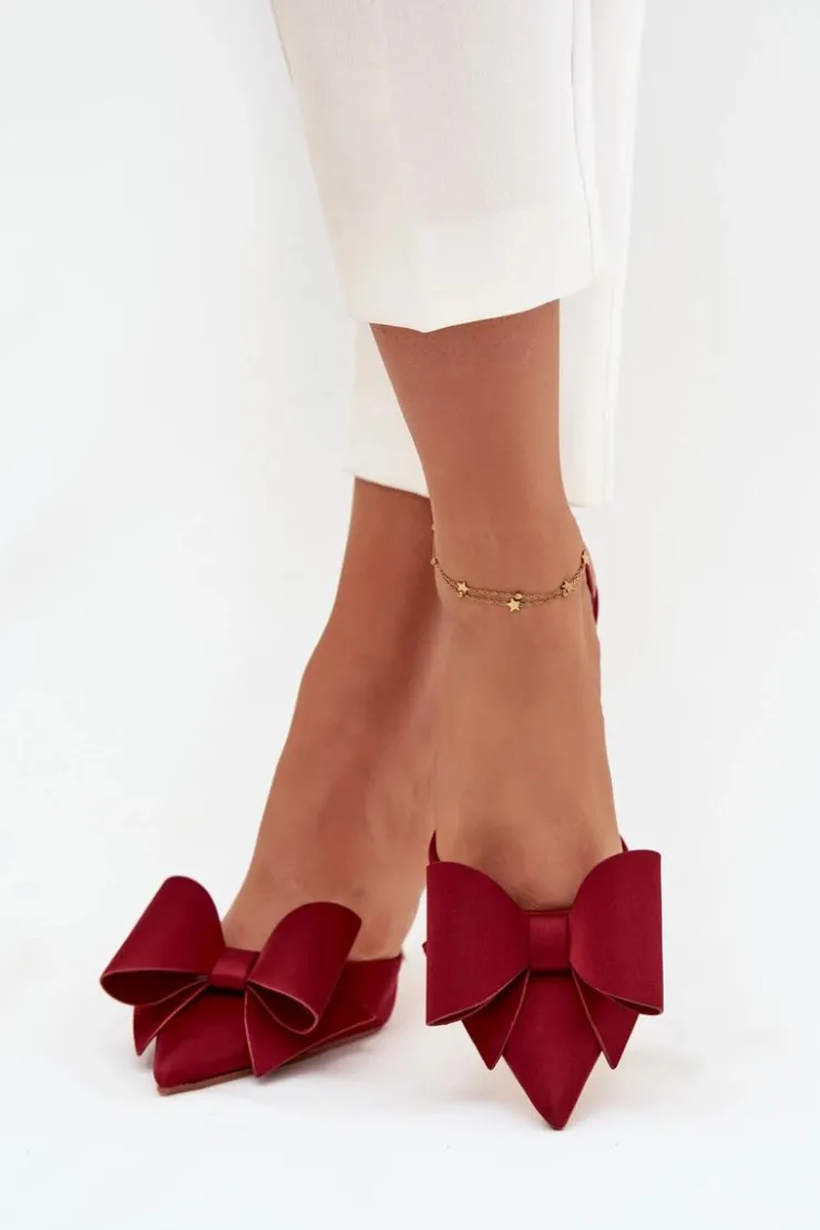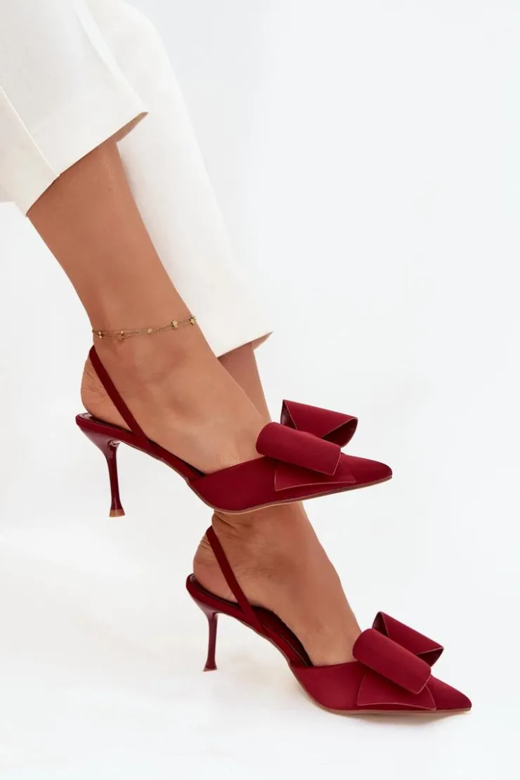 Eleganckie szpilki damskie z odkrytą piętą stanowią doskonały wybór dla kobiet, które pragną połączyć styl z komfortem. Wykonane z materiału tekstylnego. Szpiczaste noski podkreślają ich delikatną elegancję, a kokardka umieszczona z przodu dodaje im dodatkowego wdzięku. Świetnie sprawdzą się na różnorodne okazje, od oficjalnych spotkań po wieczorne wyjścia. Przy wyborze rozmiaru prosimy sugerować się tabelą rozmiarów.