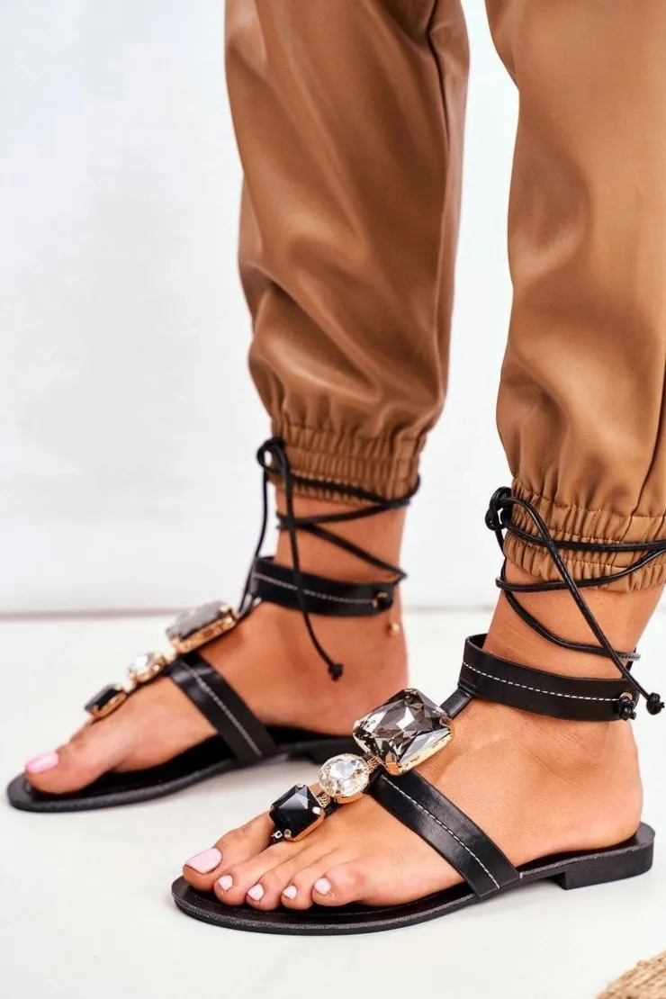 Wyjątkowe sandały ozdobione kryształami. Wiązanie wokół kostki zapewni idealne dopasowanie. Buty wykonane są z eko skóry. Przy wyborze rozmiaru prosimy sugerować się tabelą rozmiarów.