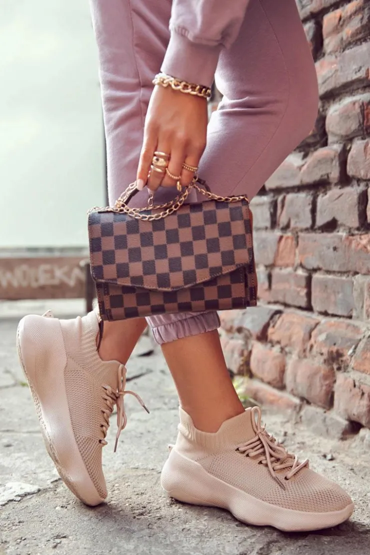Modne, wsuwane sportowe buty damskie zostały wykonane z przewiewnego materiału. Cholewka do kostki z delikatnym ściągaczem. Model z dodatkowym wiązaniem, który pozwoli na odpowiednie dopasowanie obuwia. Buty osadzone na platformie z gumowego tworzywa. Buty są wygodne w użytkowaniu, dzięki miękkiej, materiałowej wkładce. Model z zaokrąglonym noskiem. Koniecznie sprawdź pozostałe modele obuwia sportowego na naszej stronie! Przy wyborze rozmiaru prosimy kierować się tabelą rozmiarów.