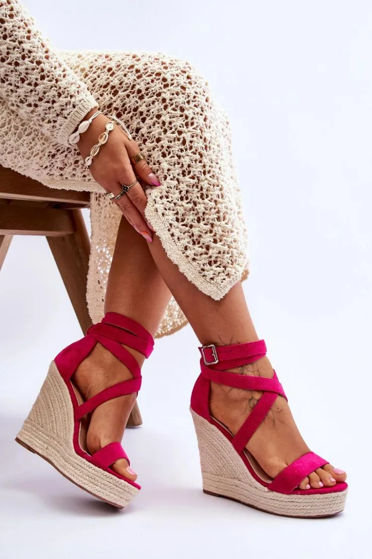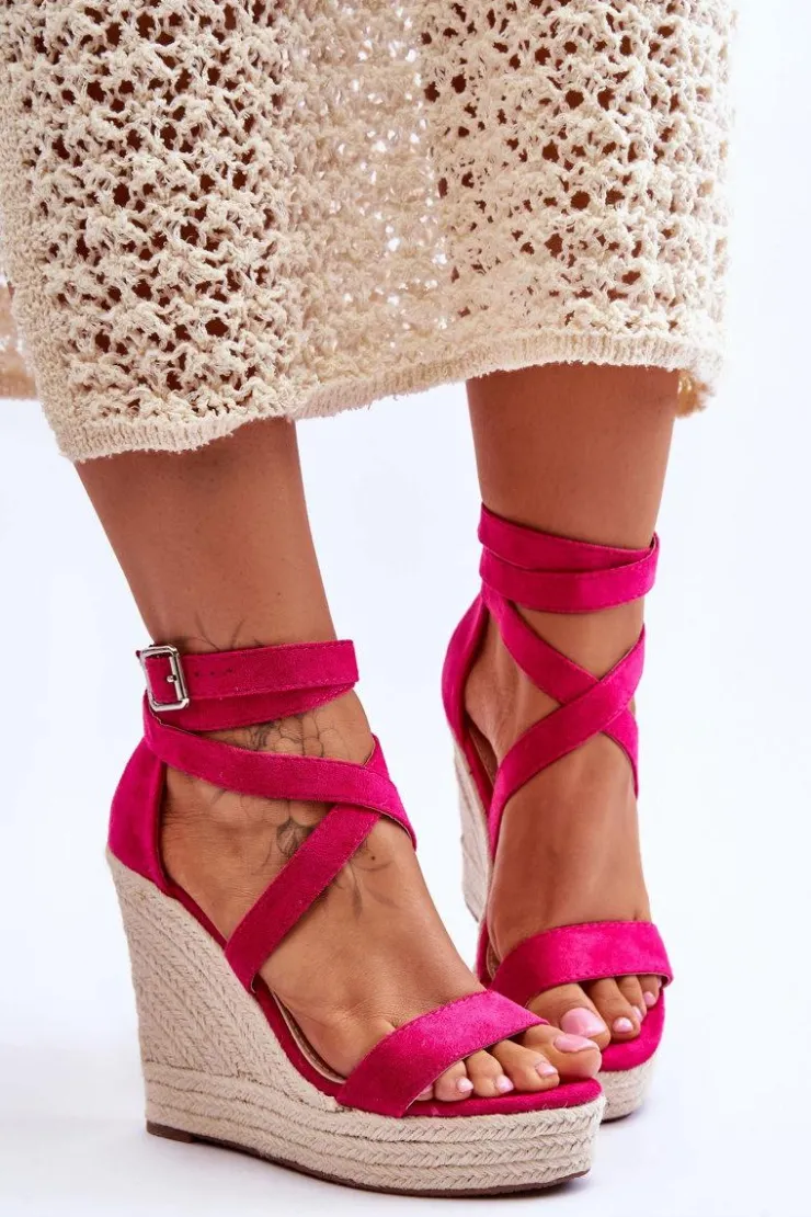 New Boto Wygodne Sandały Na Wysokim Koturnie Fuksja Lemira