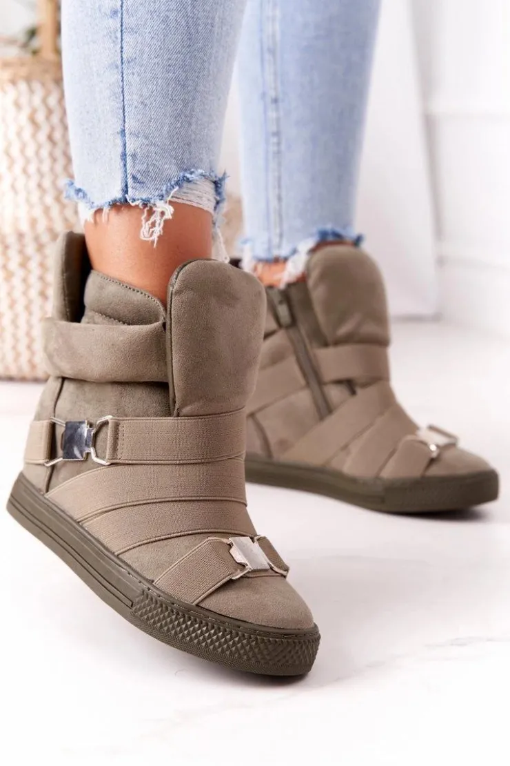 Wyjątkowe sneakersy na koturnie marki Lu Boo. Buty wykonane są z eko zamszu, posiadają wkładkę ze skóry naturalnej. Gumy ściągające dodają charakteru, a zakładanie ułatwi wszyty suwak.