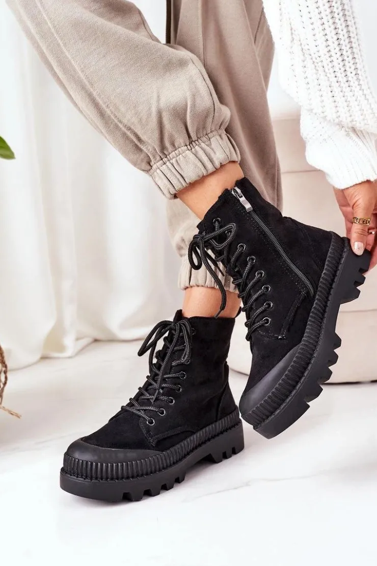 Workery damskie wykonane z eko zamszu. Wszyty suwak ułatwi zakładanie. Przy wyborze rozmiaru prosimy sugerować się tabelą rozmiarów.