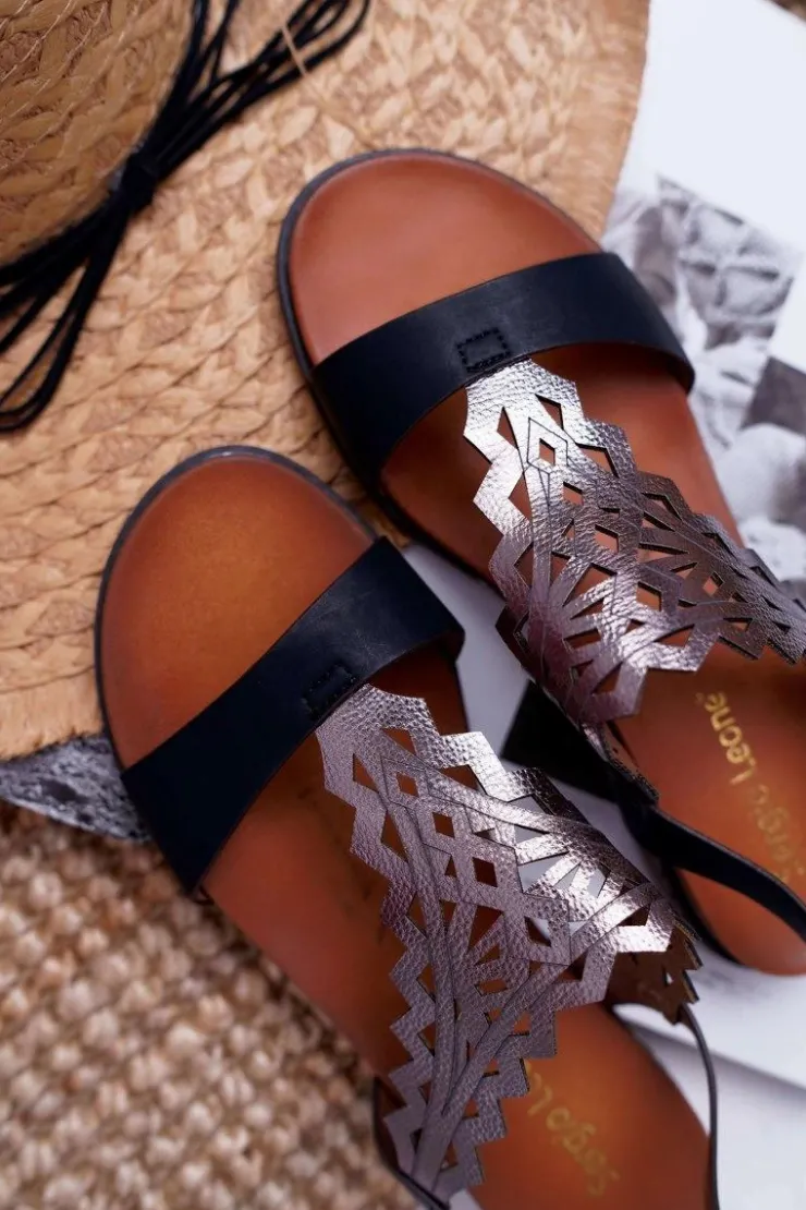 New Buty Sergio Leone Sandały Damskie Płaskie Sergio Leone SK011 Czarne Lirielle