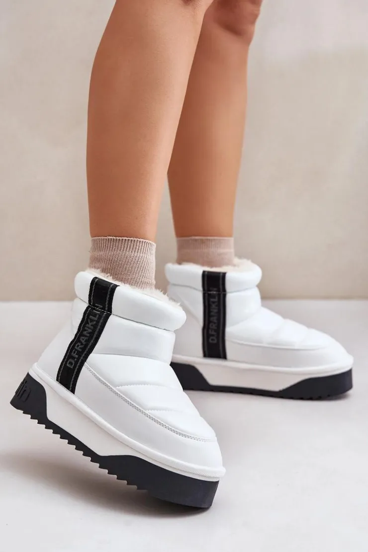 Damskie śniegowce marki D.Franklin charakteryzują się pikowanym wykończeniem. Buty te zostały wykonane z materiałów o wysokiej jakości, które są jednocześnie lekkie i elastyczne. Wysoka podeszwa skutecznie izoluje od zimnego podłoża, a wnętrze wyłożone grubym, syntetycznym futerkiem gwarantuje komfort i ciepło podczas zimowych dni. To elegancki model, który warto mieć! Przy wyborze rozmiaru prosimy sugerować się tabelą rozmiarów.