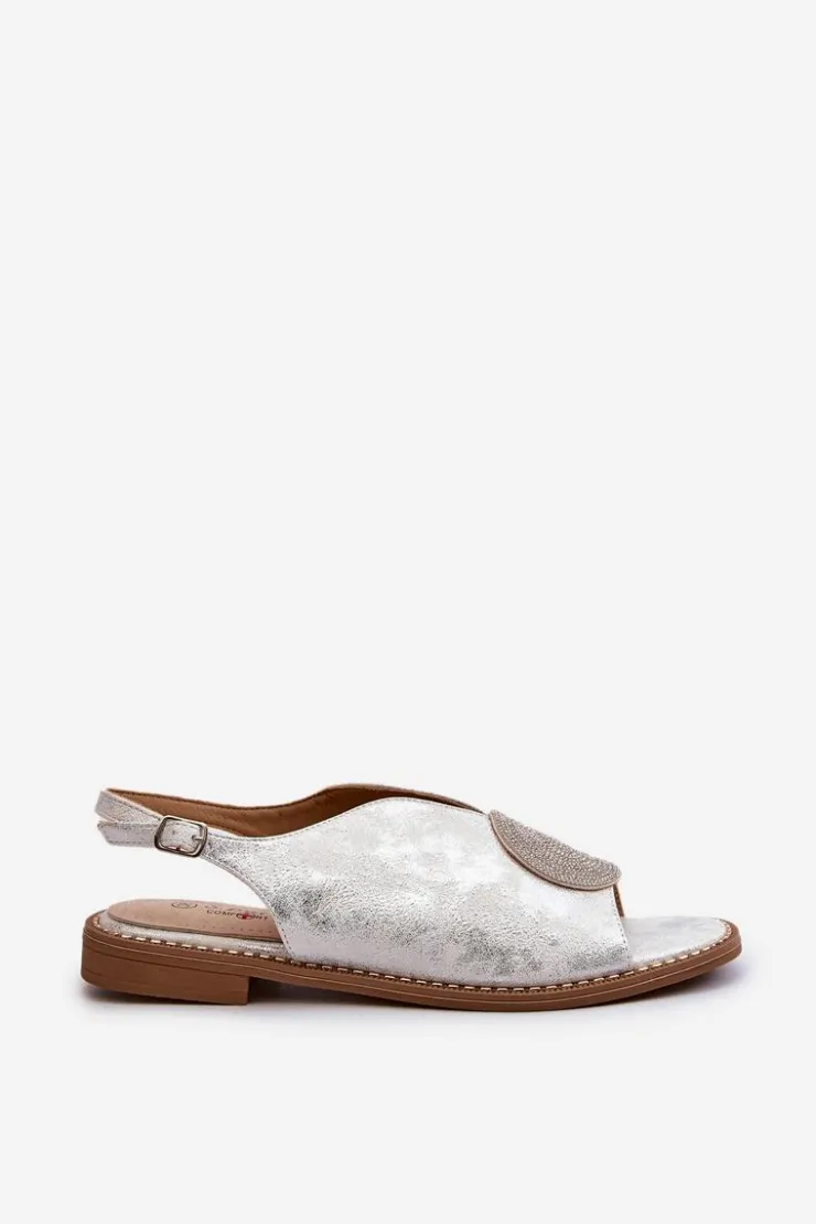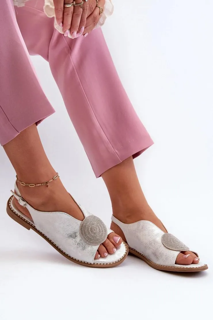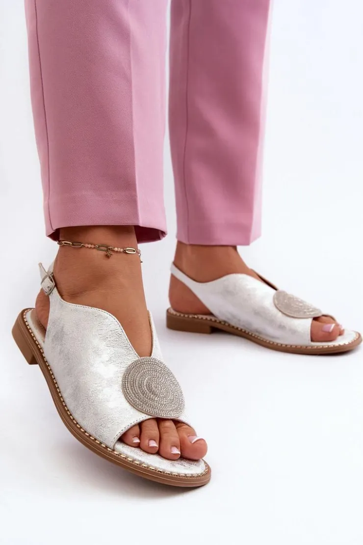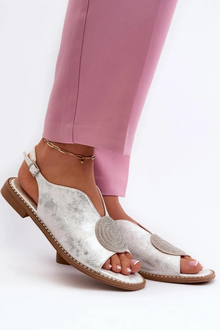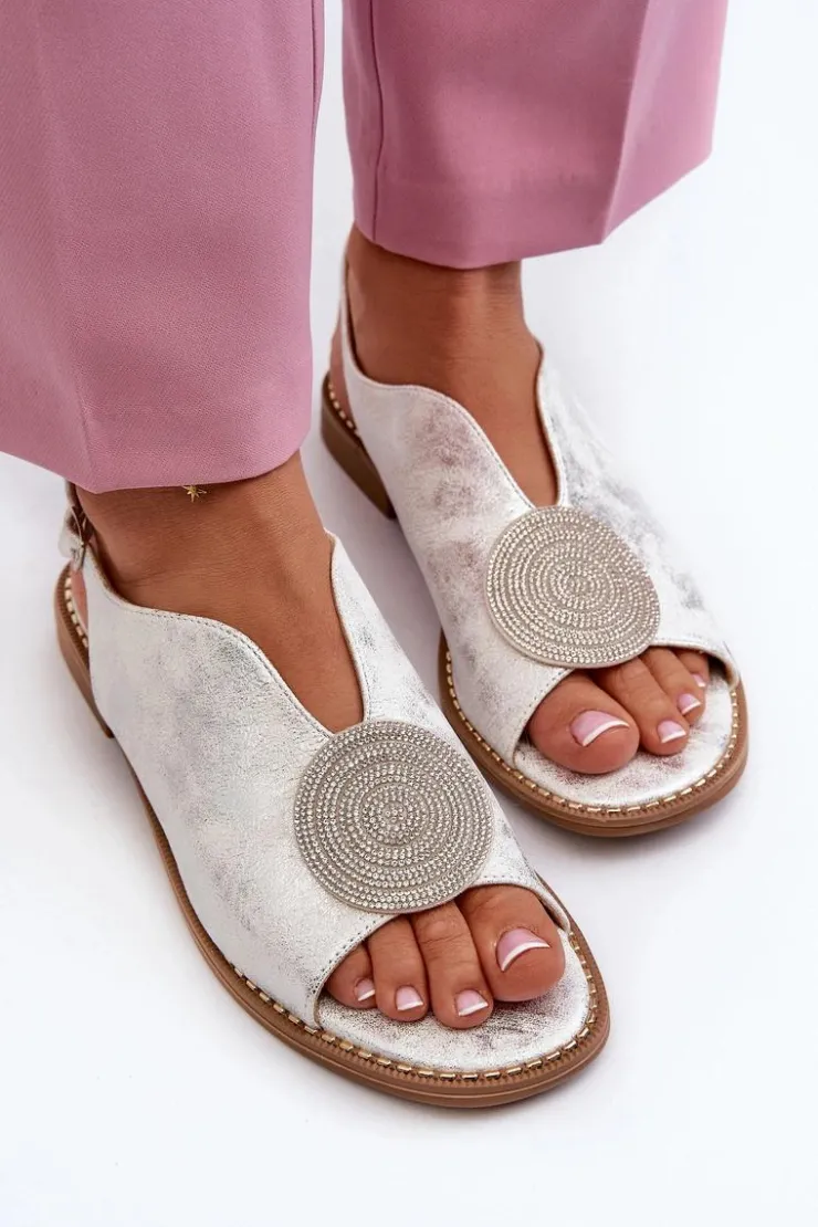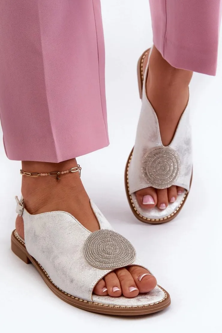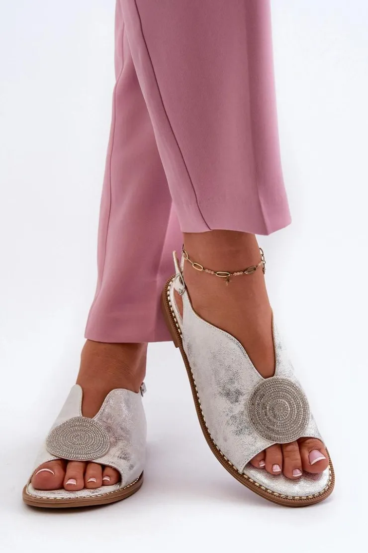 Błyszczące sandały damskie marki S.Barski to połączenie elegancji i wygody. Osadzone na płaskim obcasie. Zapinane na regulowany pasek ze sprzączką, gwarantują idealne dopasowanie do stopy. Skórzana wkładka zapewni komfort podczas użytkowania. Ozdoba dodaje wyjątkowego uroku. Idealne na letnie dni i wieczorne wyjścia! Przy wyborze rozmiaru prosimy kierować się tabelą rozmiarów.