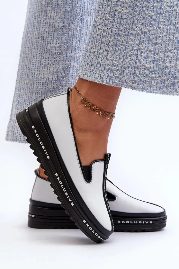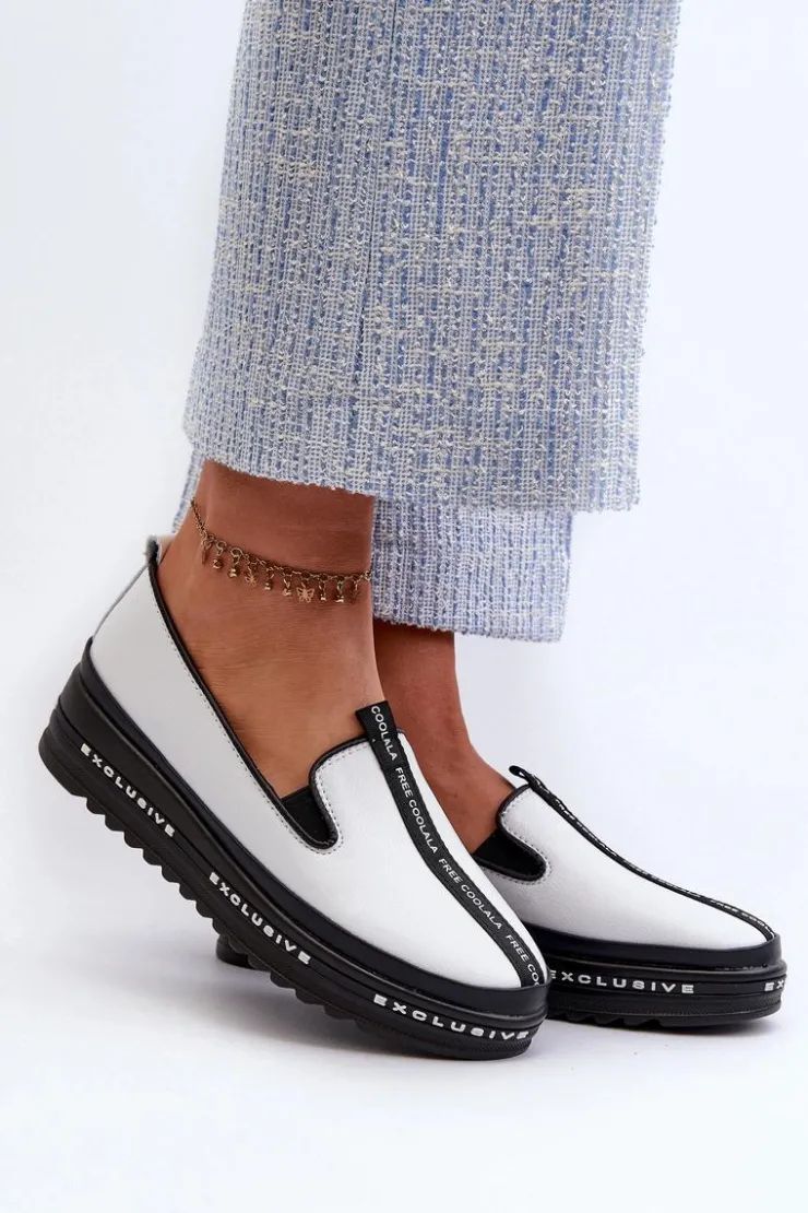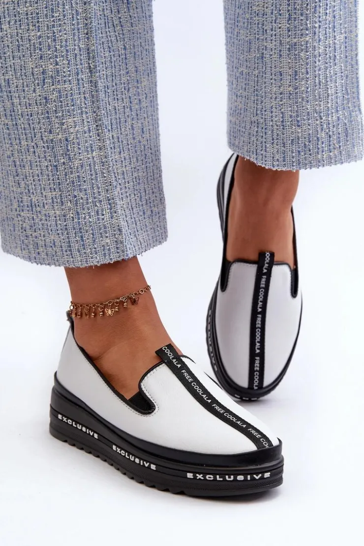 Wsuwane półbuty damskie marki S.Barski wykonane ze skóry naturalnej to połączenie elegancji i wygody. Osadzone na platformie. Ozdobione napisami. Miękka wkładka comfort. Noski zaokrąglone. Ten niezwykle stylowy model z pewnością dopełni wiele stylizacji! Przy wyborze rozmiaru prosimy sugerować się tabelą rozmiarów.