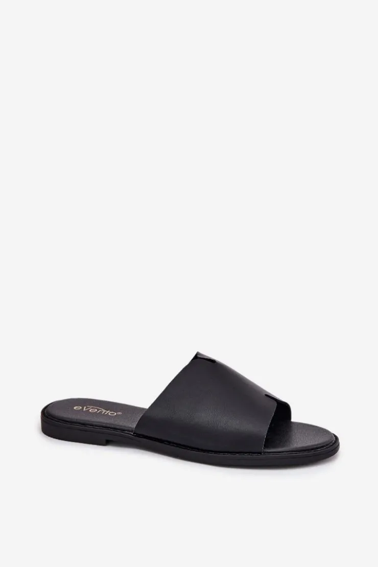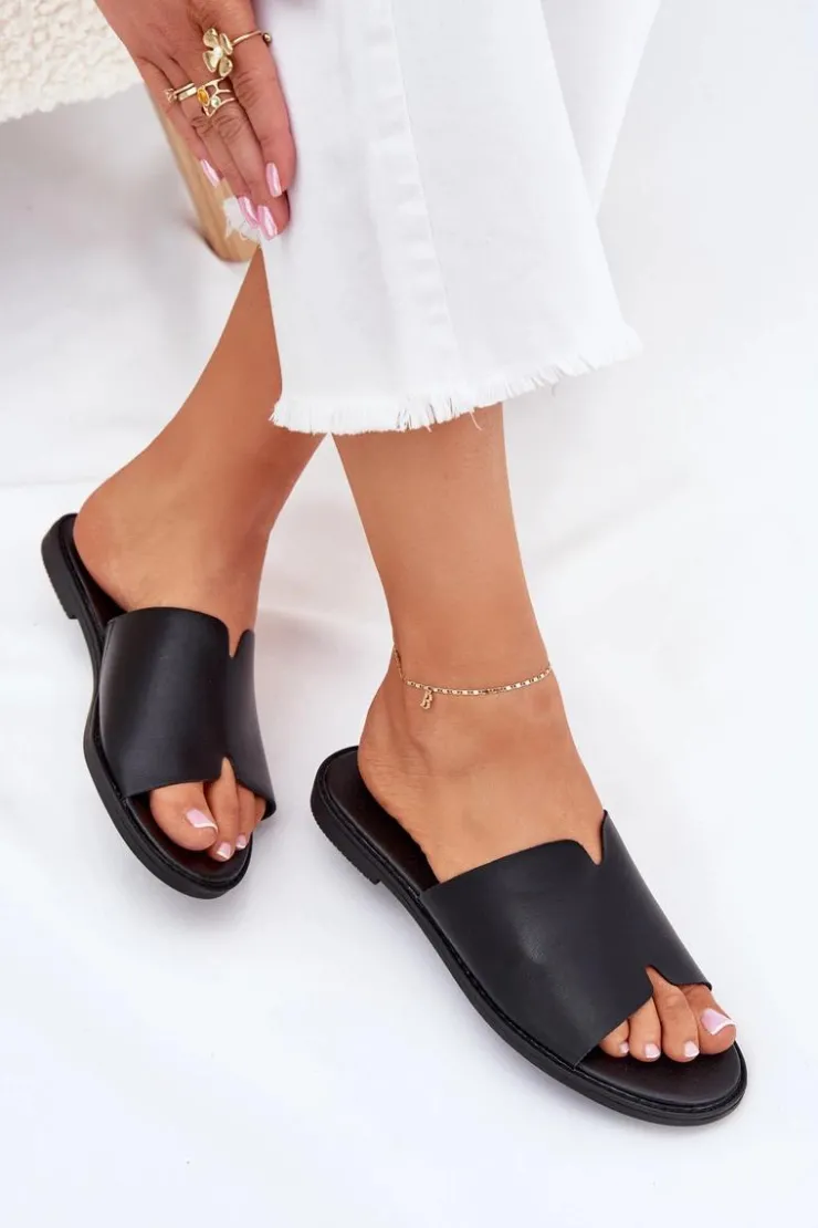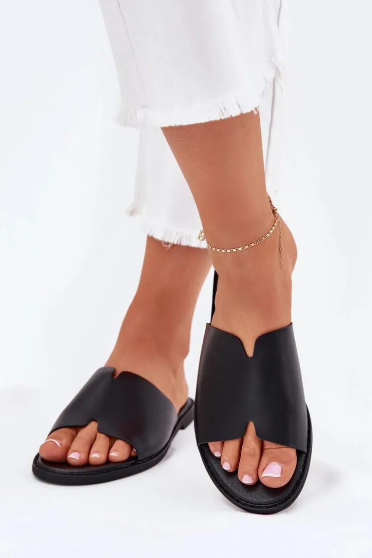 Klapki damskie z eko skóry na płaskim obcasie to klasyczna i elegancka opcja na ciepłe dni. Dzięki prostemu fasonowi łączą wygodę z uniwersalnym stylem, pasując do wielu letnich stylizacji. Idealne do codziennych wyjść, zapewniają komfort i subtelną elegancję przez cały dzień. Przy wyborze rozmiaru prosimy sugerować się tabelą rozmiarów.