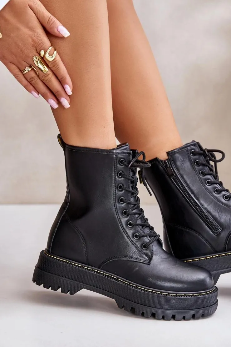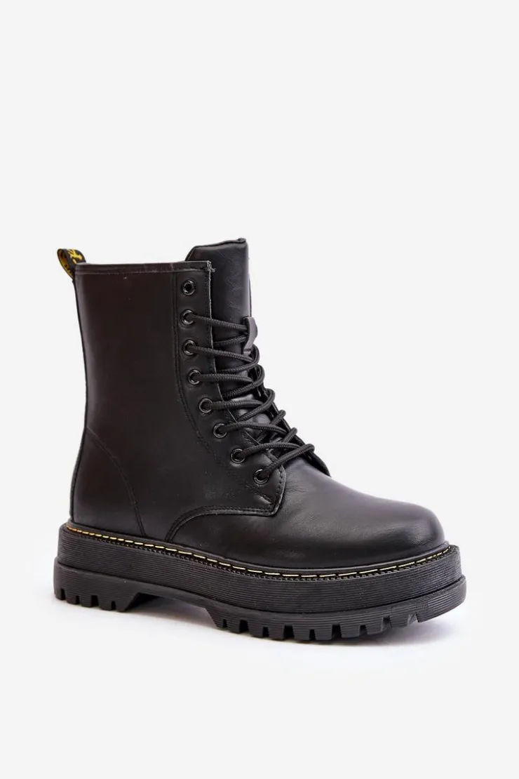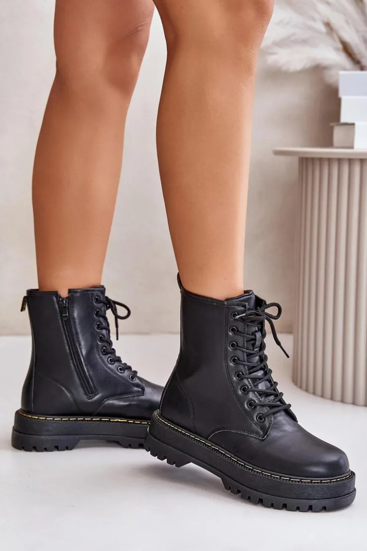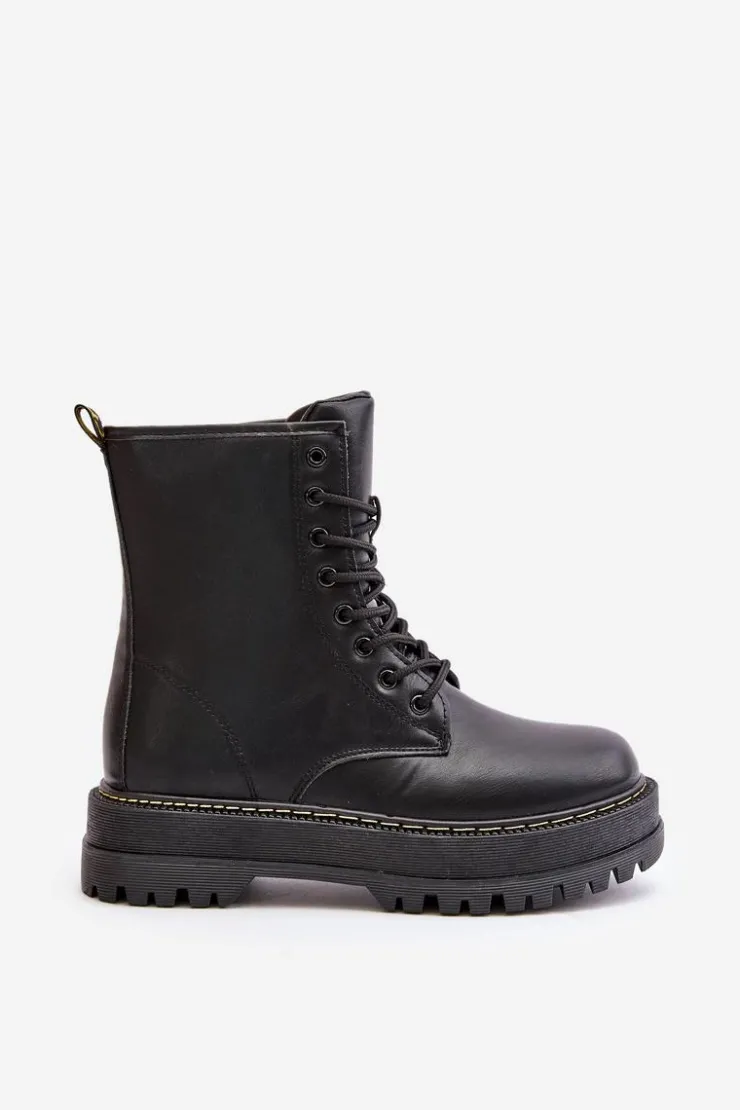 New Evento Ocieplane Botki Workery z Eko Skóry Na Zamek Czarne Naleli Czarny