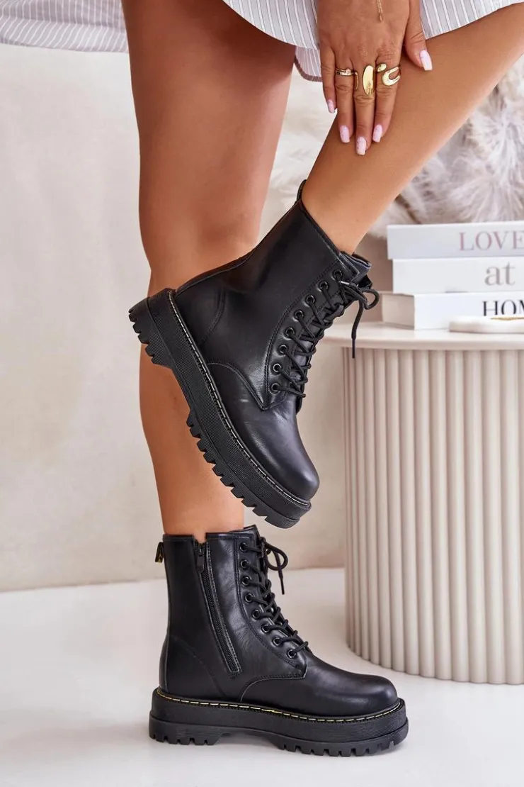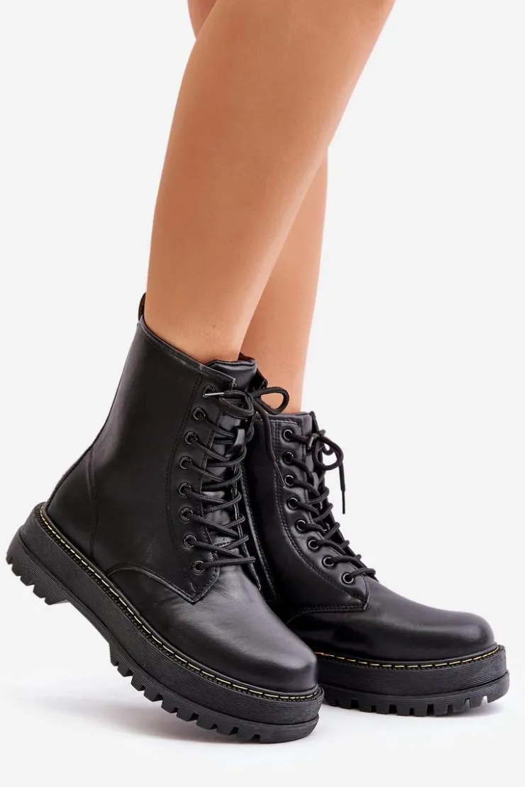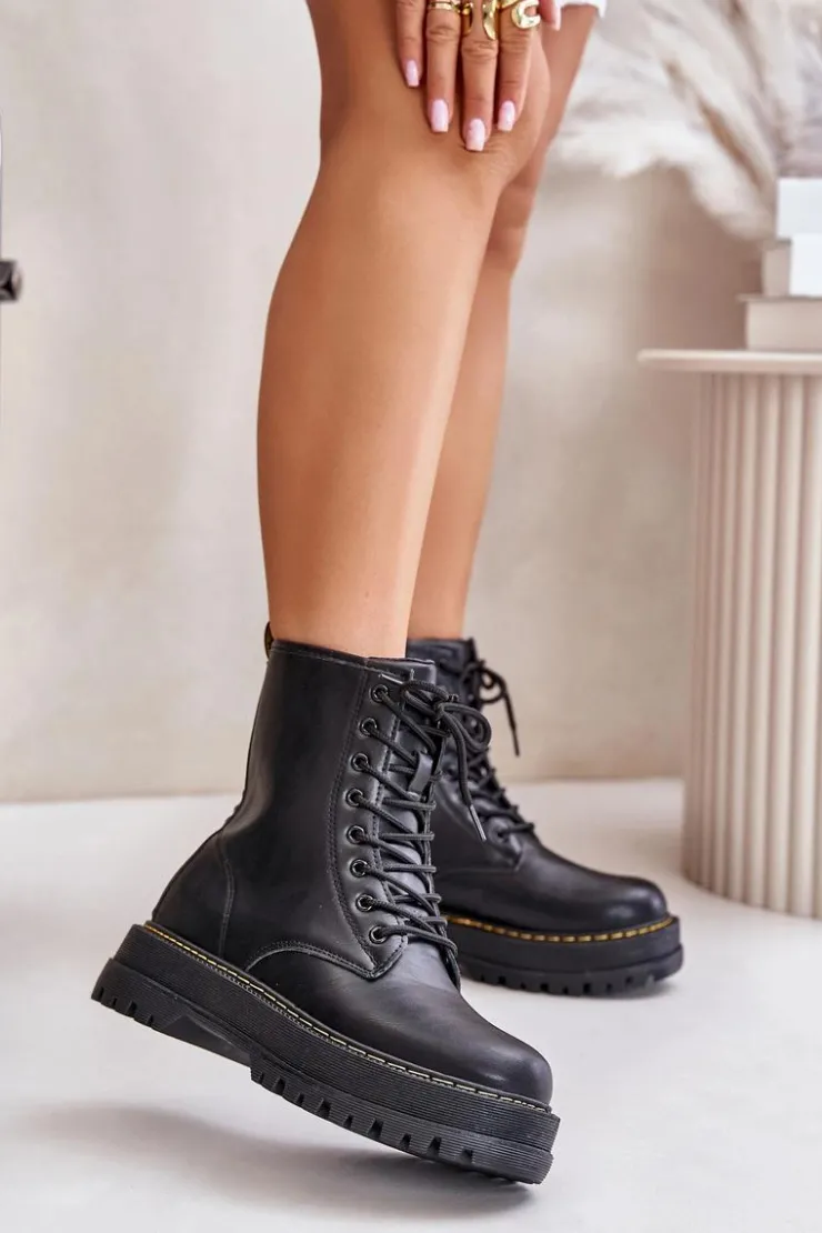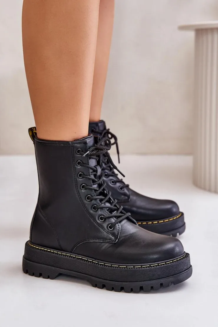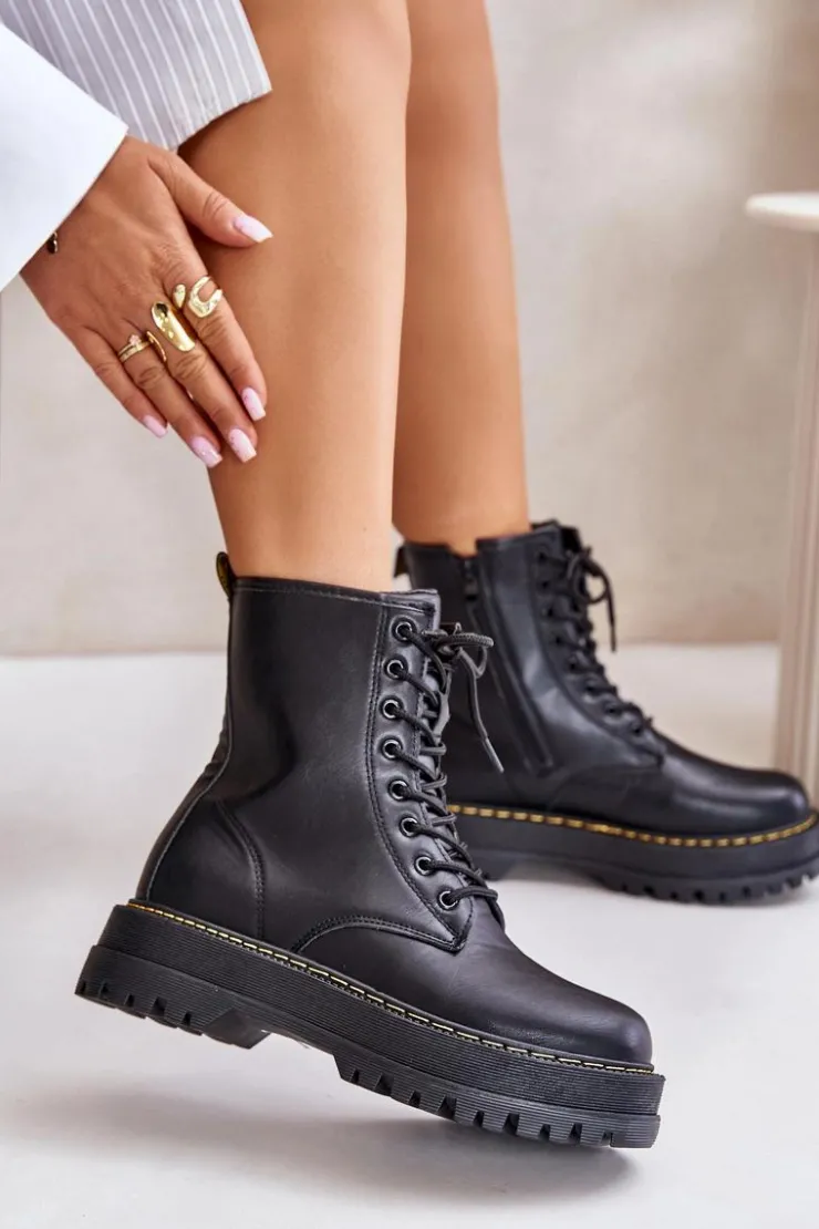 New Evento Ocieplane Botki Workery z Eko Skóry Na Zamek Czarne Naleli Czarny