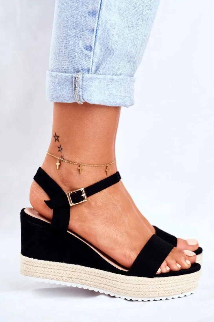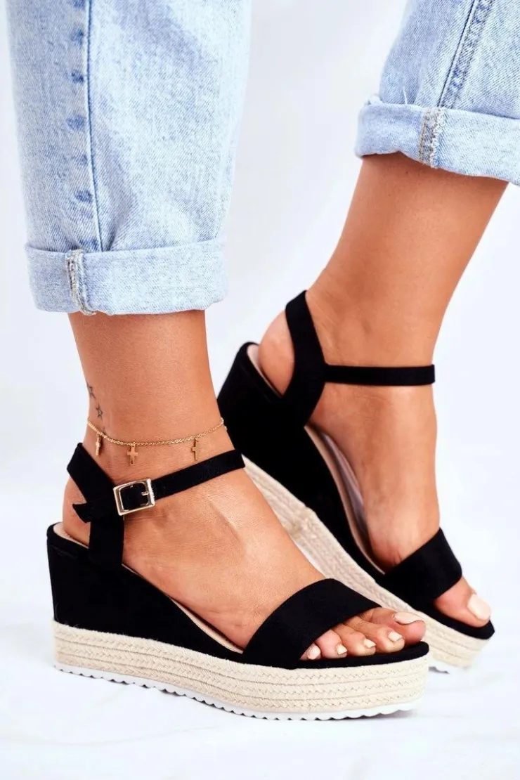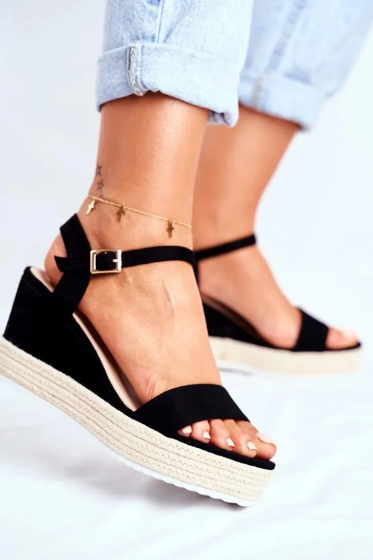 New Evento Sandały Damskie Na Koturnie Czarne Merdoe