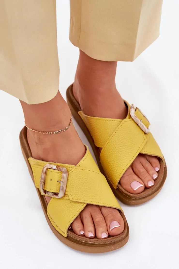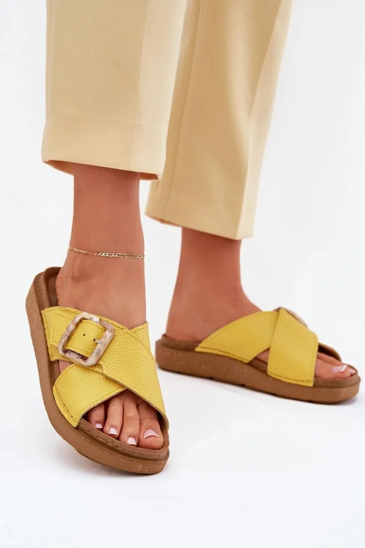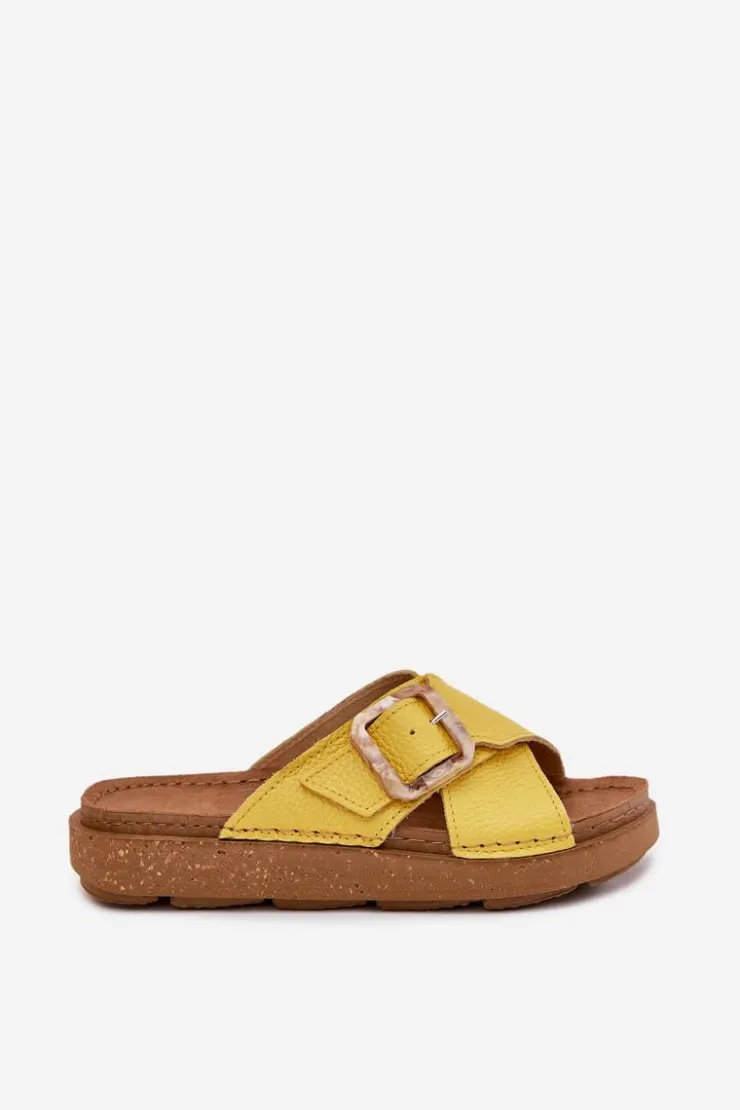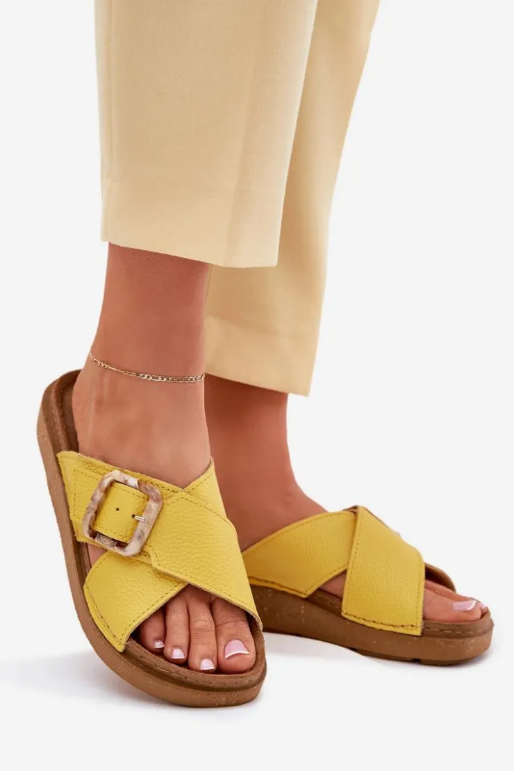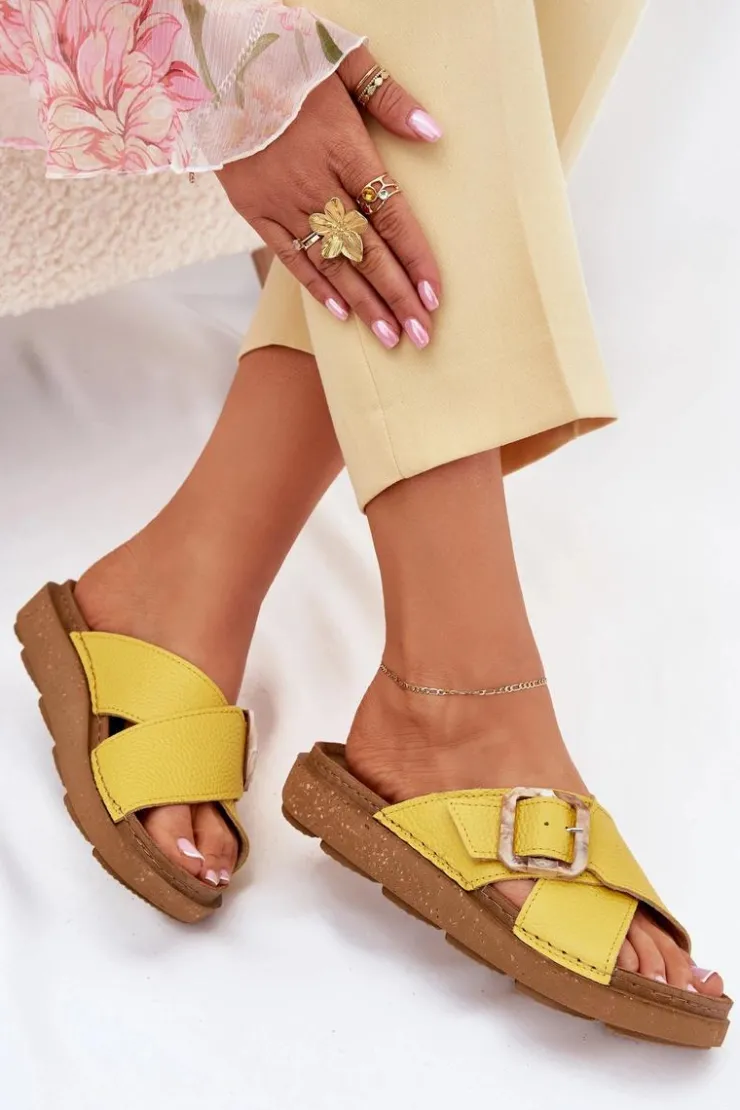 Klapki damskie od marki INBLU. Wykonane z naturalnej skóry. Osadzone na platformie. Model ten posiada ozdobną klamrę z regulowanym paskiem. Wkładka wewnętrzna „COMFORT ANATOMICO” profilowana, dostosowana do kształtu anatomicznego stopy, wykonana z miękkiej, naturalnej skóry. Spód dwuwarstwowy wykonany z lekkiego i elastycznego tworzywa – poliuretanu – zapewnia sprężystość i bardzo dobre przenoszenie obciążeń na podłoże. Przy wyborze rozmiaru prosimy sugerować się tabelą rozmiarów.