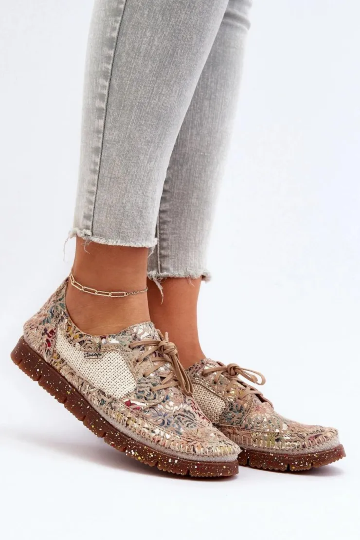 Półbuty damskie od polskiej marki Maciejka z uroczym zdobieniem na cholewce. Wykonane z miękkiej skóry naturalnej i tkaniny, prezentują się niezwykle efektownie. Zaokrąglone dodają delikatności, a klasyczne sznurowanie zapewnia idealne dopasowanie do stopy. Te półbuty nie tylko podkreślą Twój indywidualny styl, ale także zapewnią komfort noszenia na każdym kroku! Przy wyborze rozmiaru prosimy sugerować się tabelą rozmiarów.