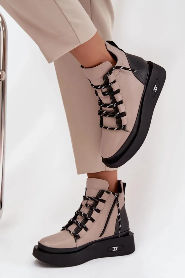 Botki damskie marki Artiker to propozycja dla kobiet ceniących styl i wygodę. Wykonane z naturalnej skóry, prezentują wysoką jakość i trwałość. Osadzone na stabilnej platformie, dodają charakteru i zapewniają komfort noszenia. Model posiada sznurowanie oraz praktyczny zamek, co ułatwia zakładanie i dopasowanie do stopy. Starannie wykonane detale podkreślają nowoczesny i modny wygląd obuwia. Przy wyborze rozmiaru prosimy sugerować się tabelą rozmiarów.