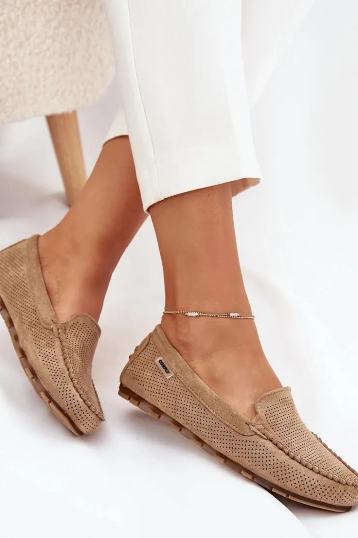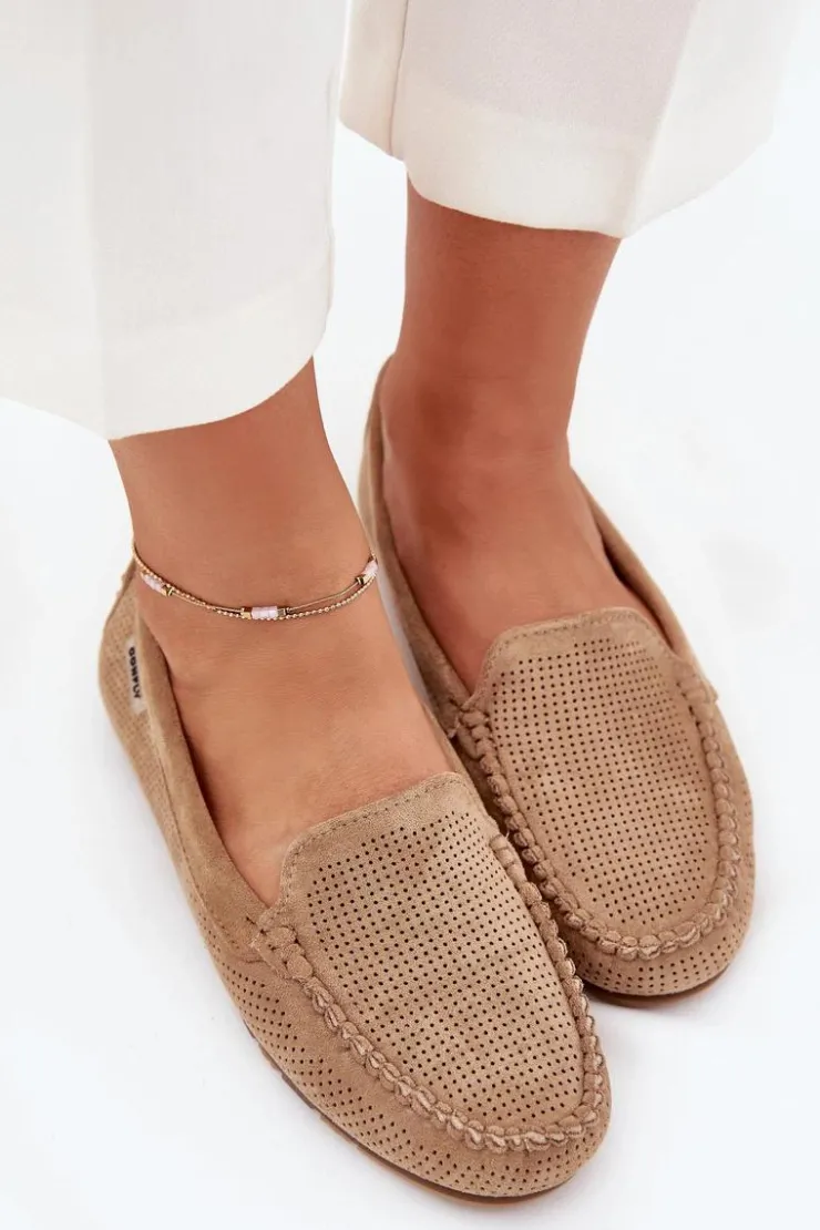 Klasyczne mokasyny damskie wykonane z przyjemnego w dotyku eko zamszu to połączenie wygody i stylu. Zaokrąglone noski nadają im delikatny wygląd, a miękka wkładka z pianki, którą można wyjąć, zapewnia dodatkowy komfort podczas noszenia. Idealne na codzienne wyjścia, te mokasyny będą doskonałym uzupełnieniem Twojej garderoby. Przy wyborze rozmiaru prosimy sugerować się tabelą rozmiarów.