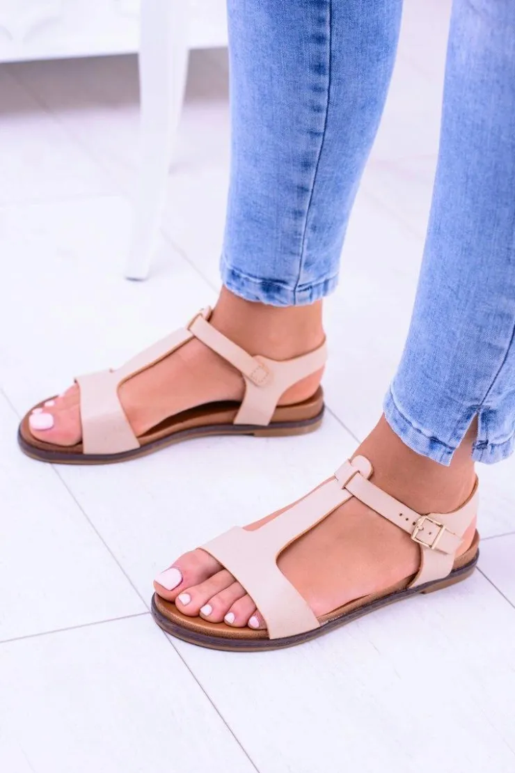 Online Boto Beżowe Damskie Płaskie Sandałki Sunnyside