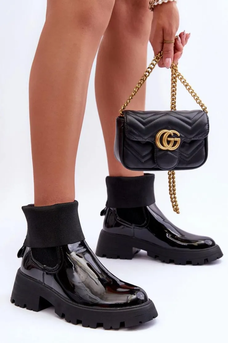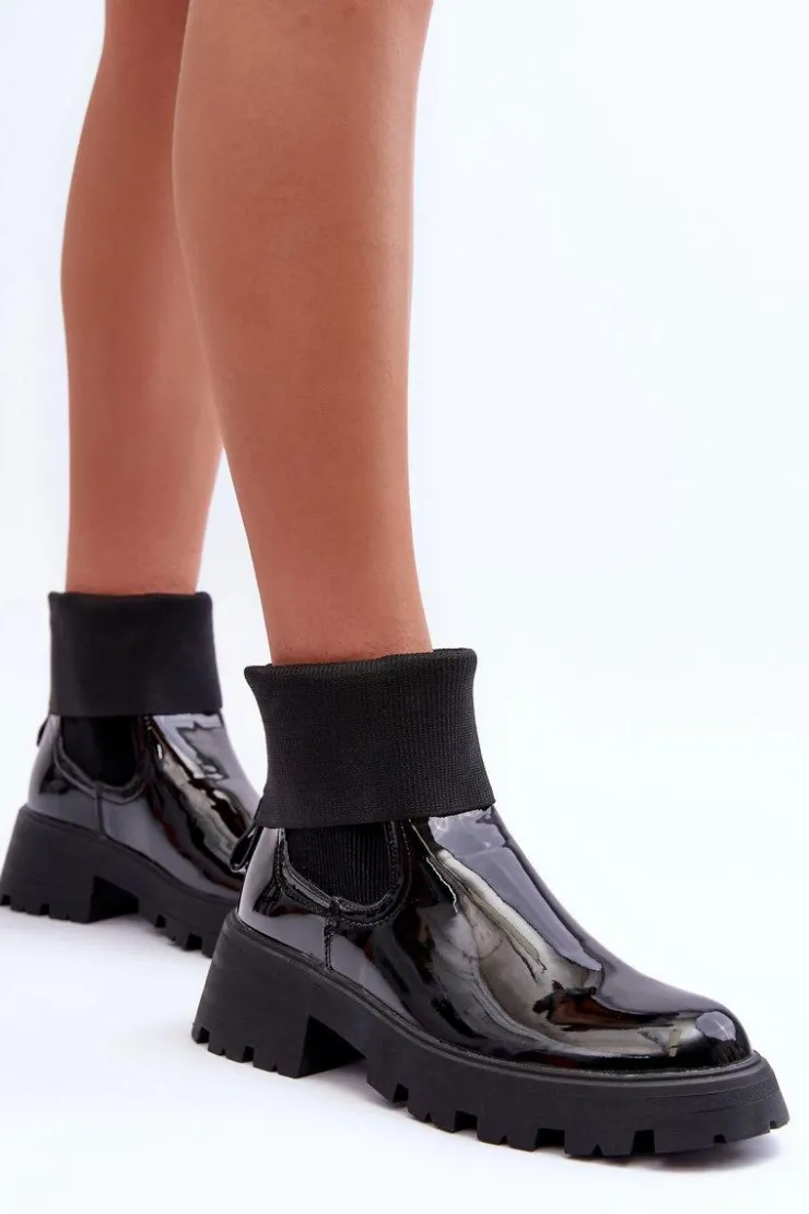 Online Boto Botki Sztyblety Lakierowane Damskie Czarne Pavo Czarny