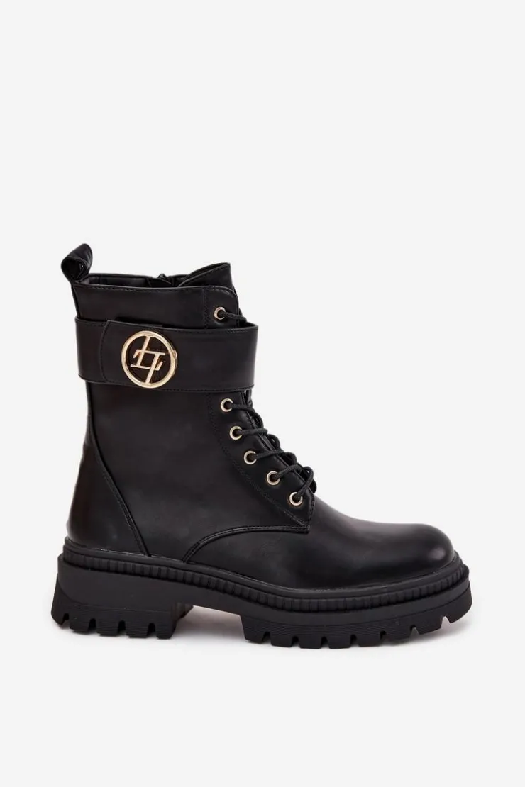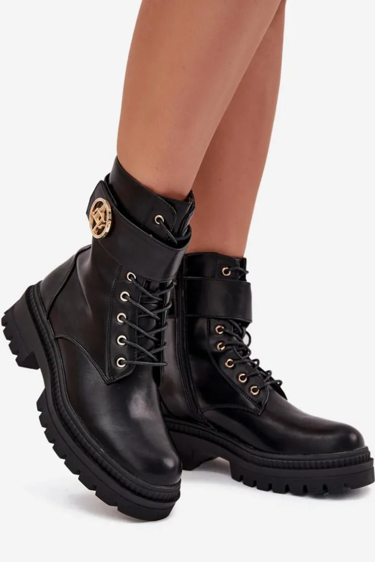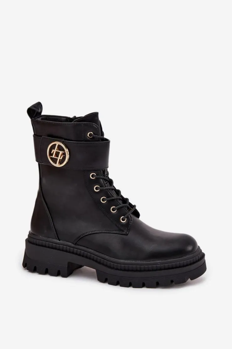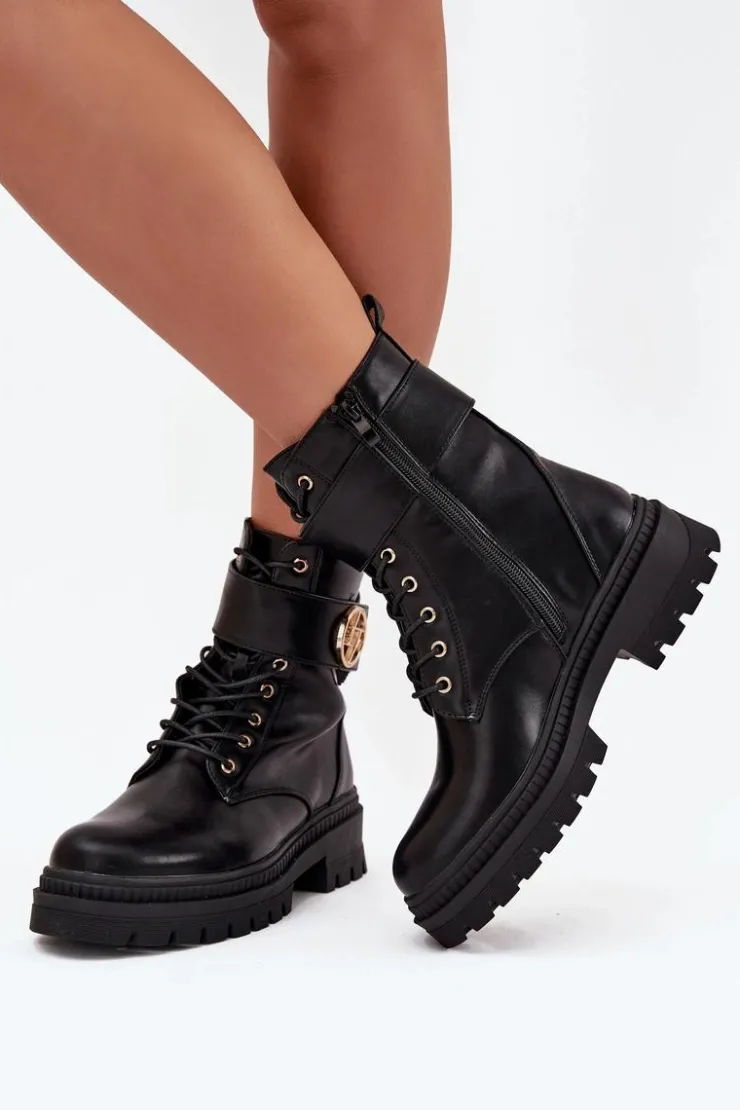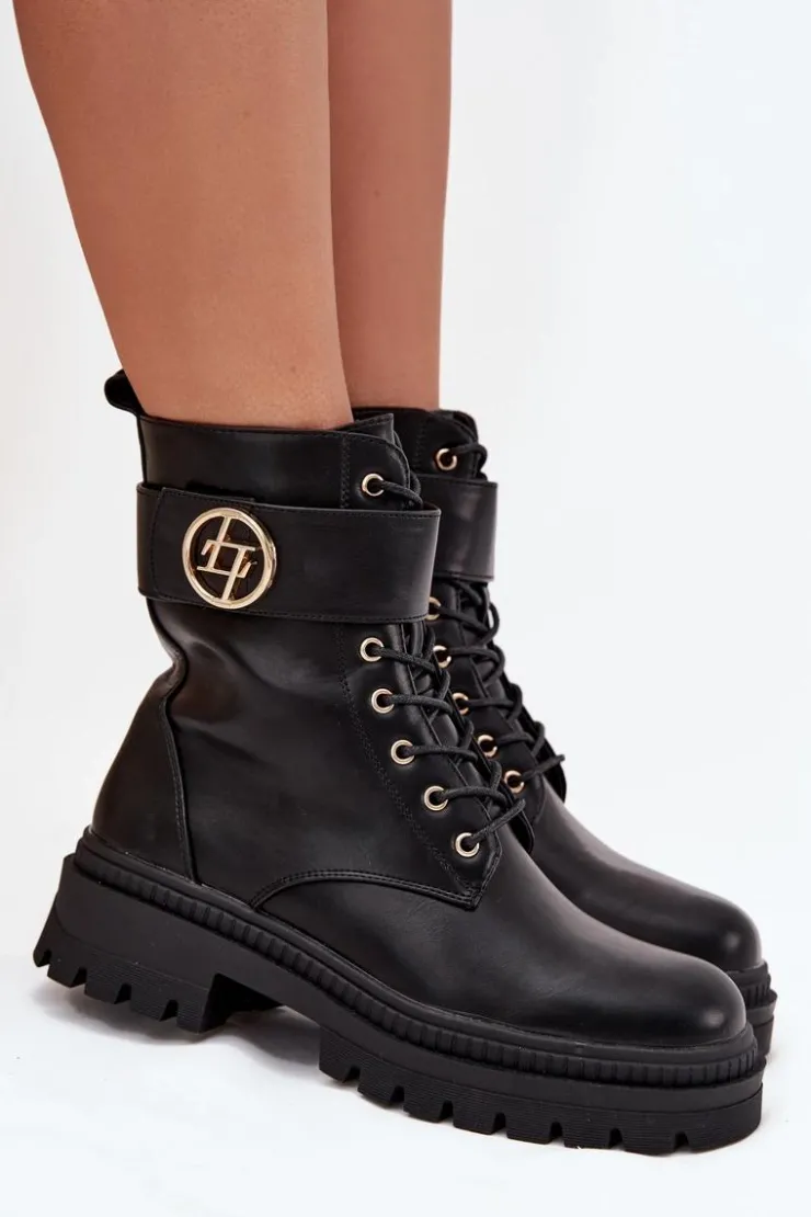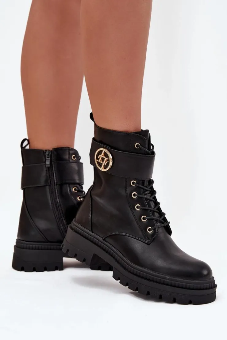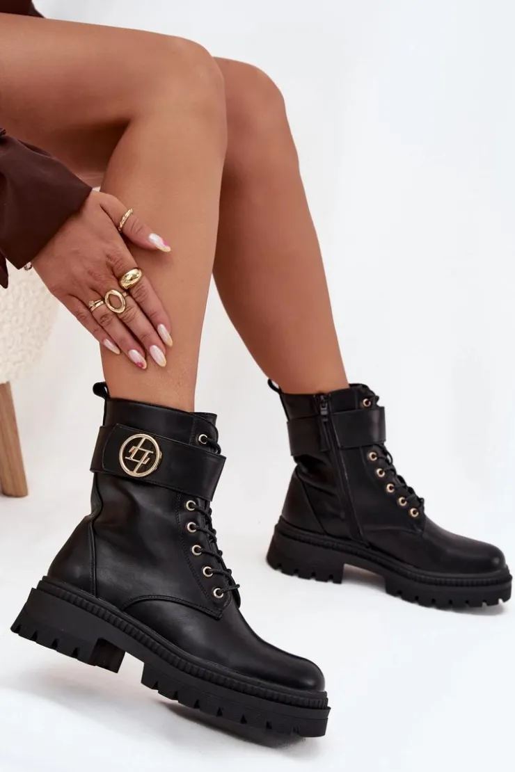 Online Boto Botki Workery Damskie Ze Złotym Detalem Ocieplane Czarne Fiorena Czarny