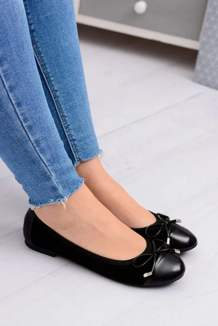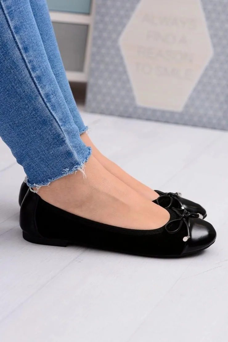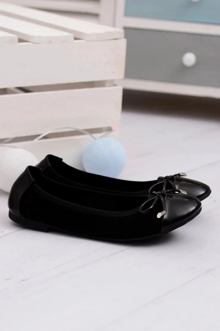 Online Boto Czarne Zamszowe Balerinki Z Kokardką Mobi