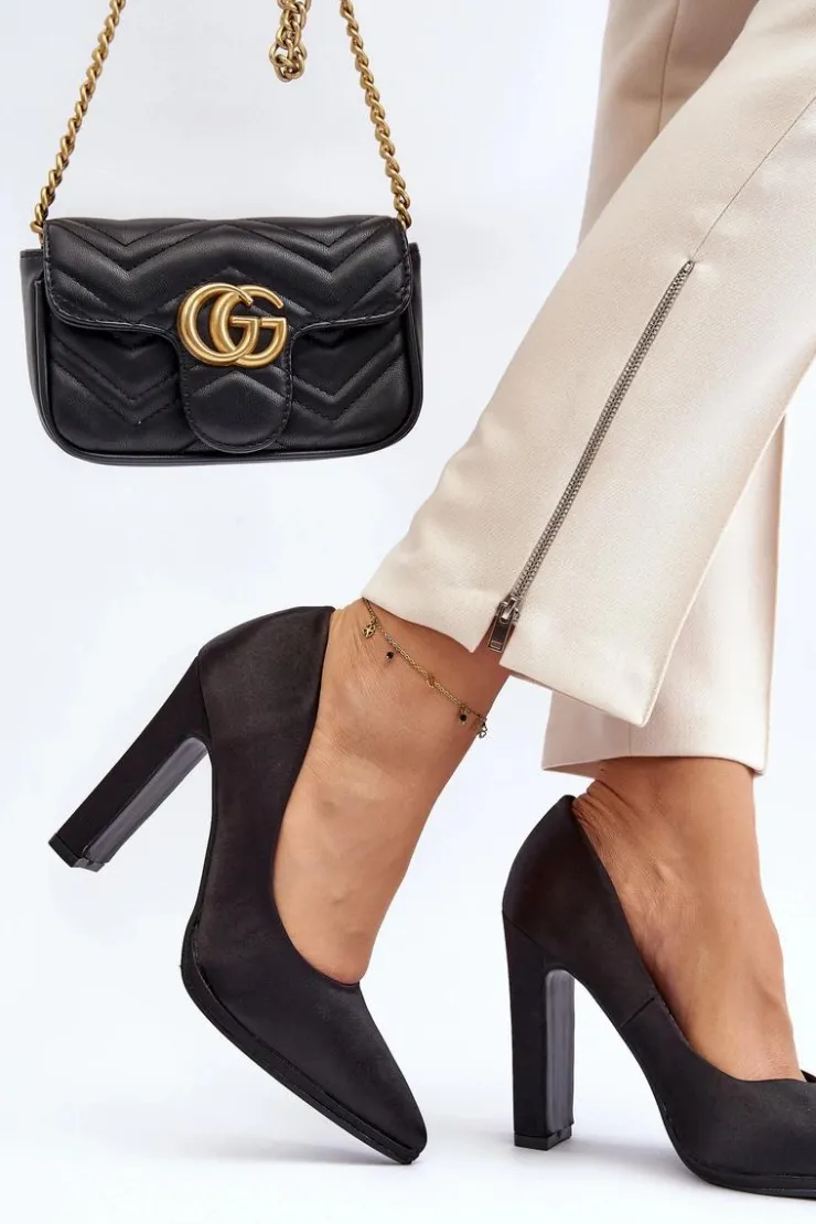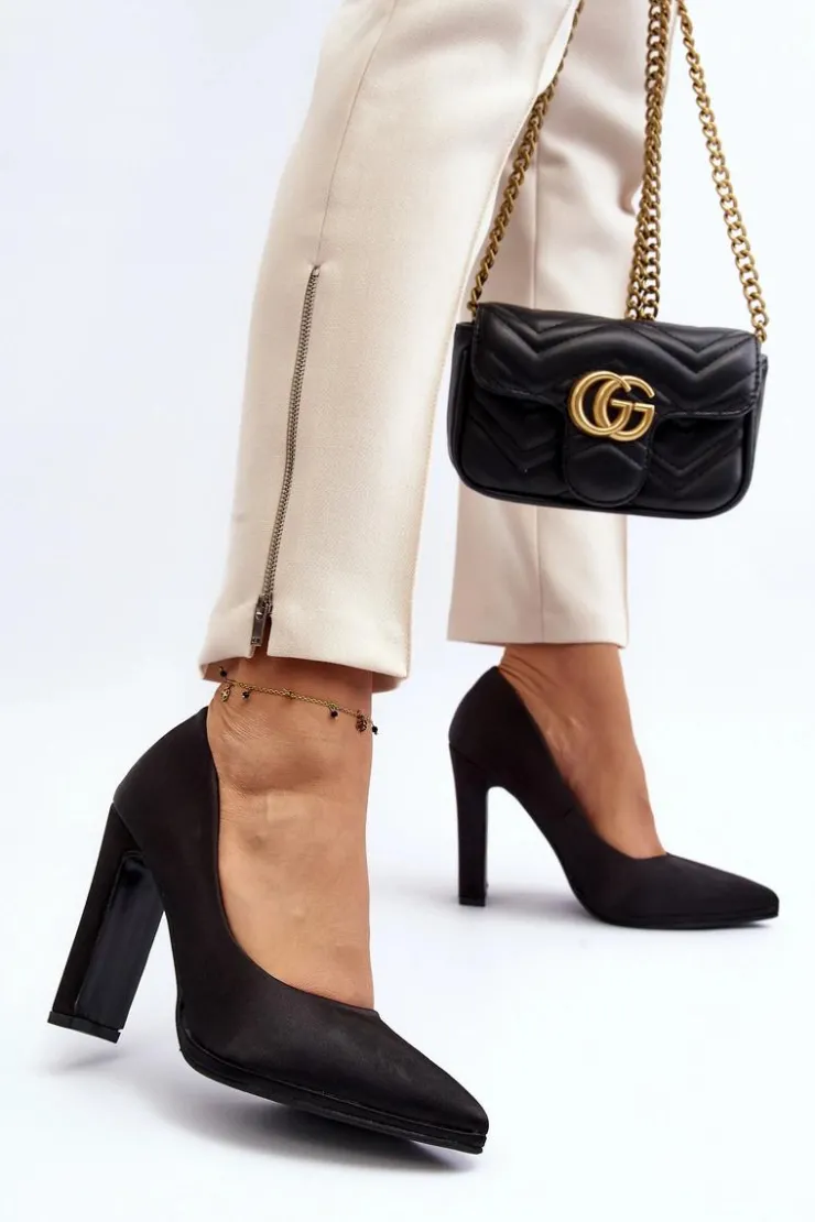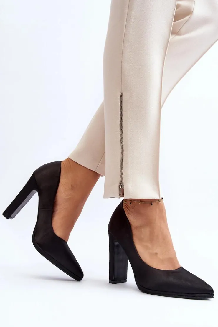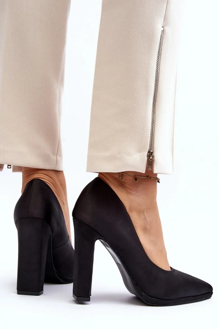Modne czółenka na obcasie w postaci słupka, z pewnością przypadną do gustu kobietom kochającym wysokie obcasy! Wykonane z materiału tekstylnego imitującego satynę. Miękka wkładka z eko skóry zapewni wygodę podczas użytkowania. Idealne na wieczorne wyjścia! Przy wyborze rozmiaru prosimy kierować się tabelą rozmiarów