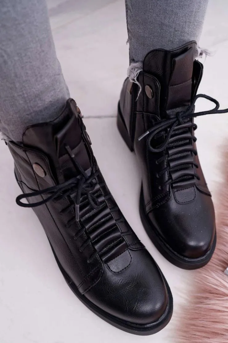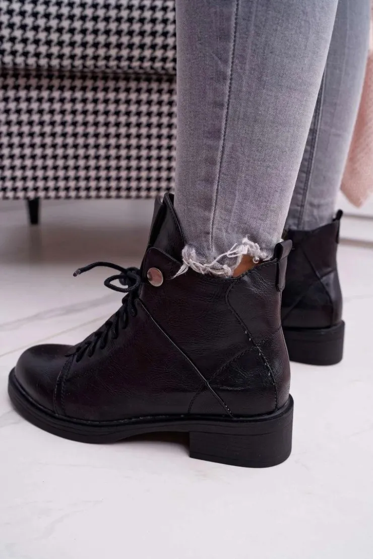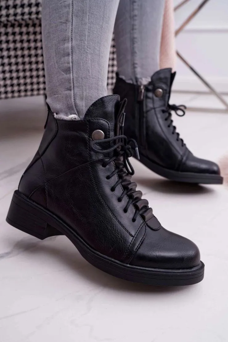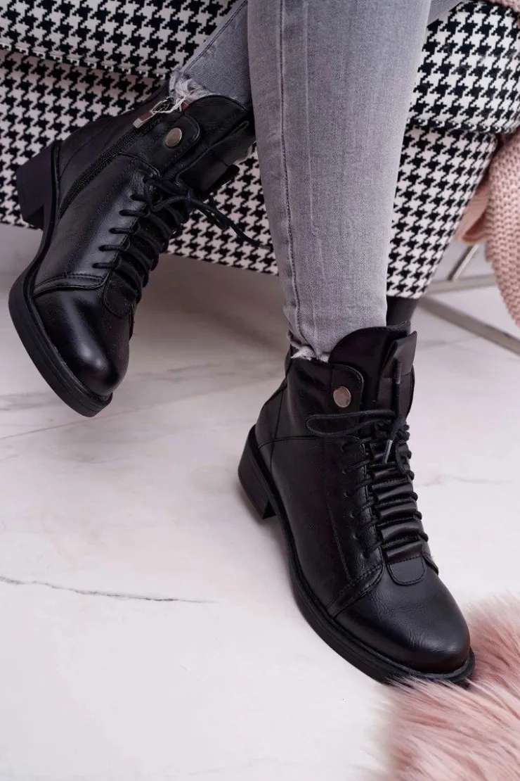 Online Boto Damskie Botki Płaski Obcas Ocieplane Czarne Livin