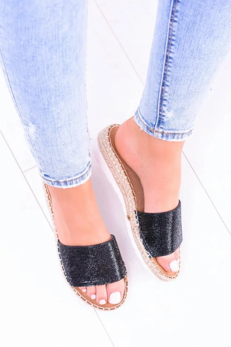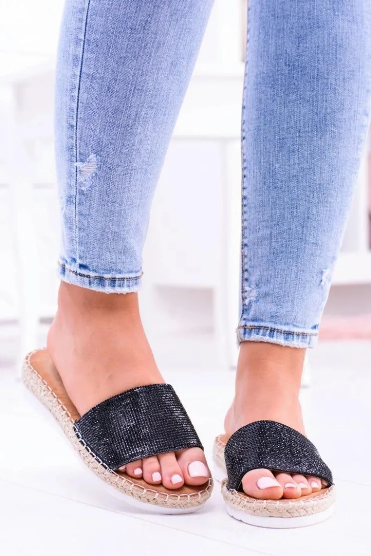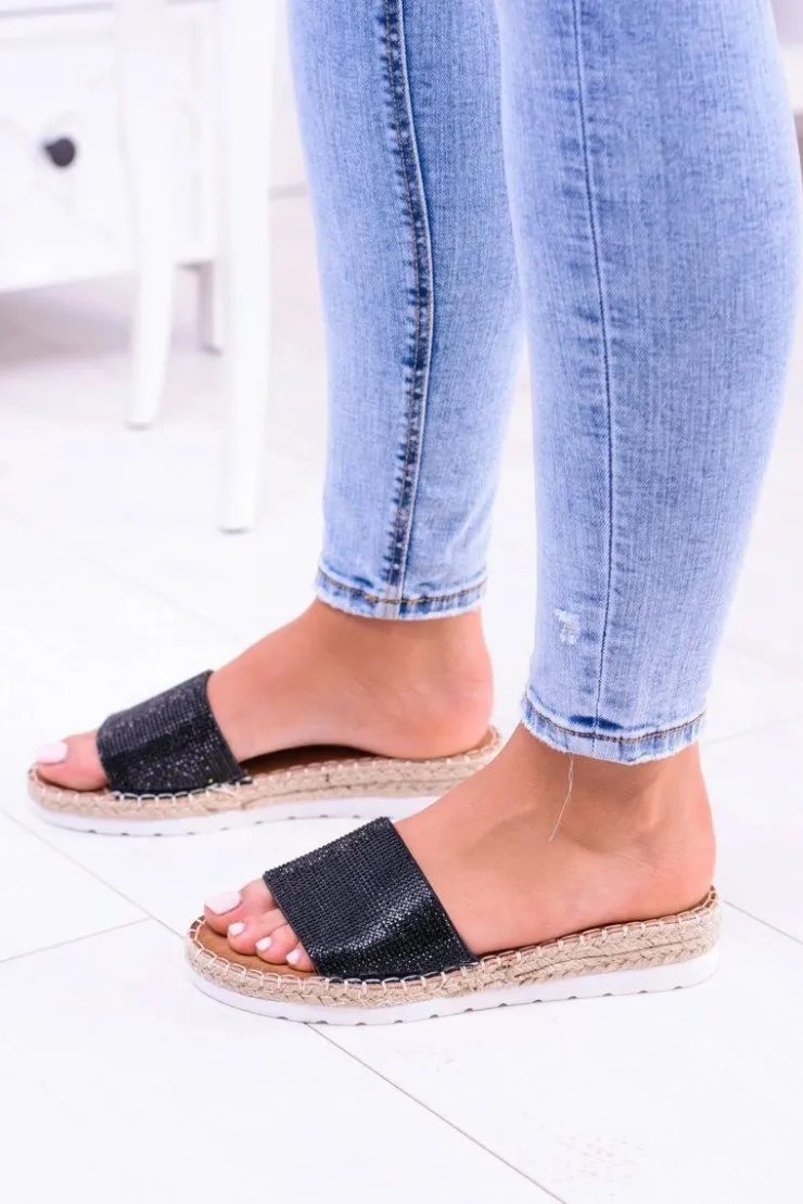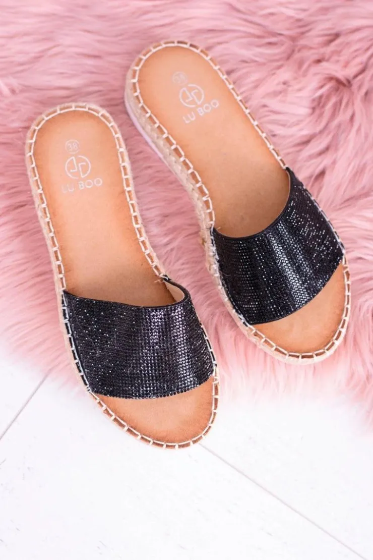 Online Boto Damskie Czarne Klapki Lu Boo Cyrkonie ShineMadam
