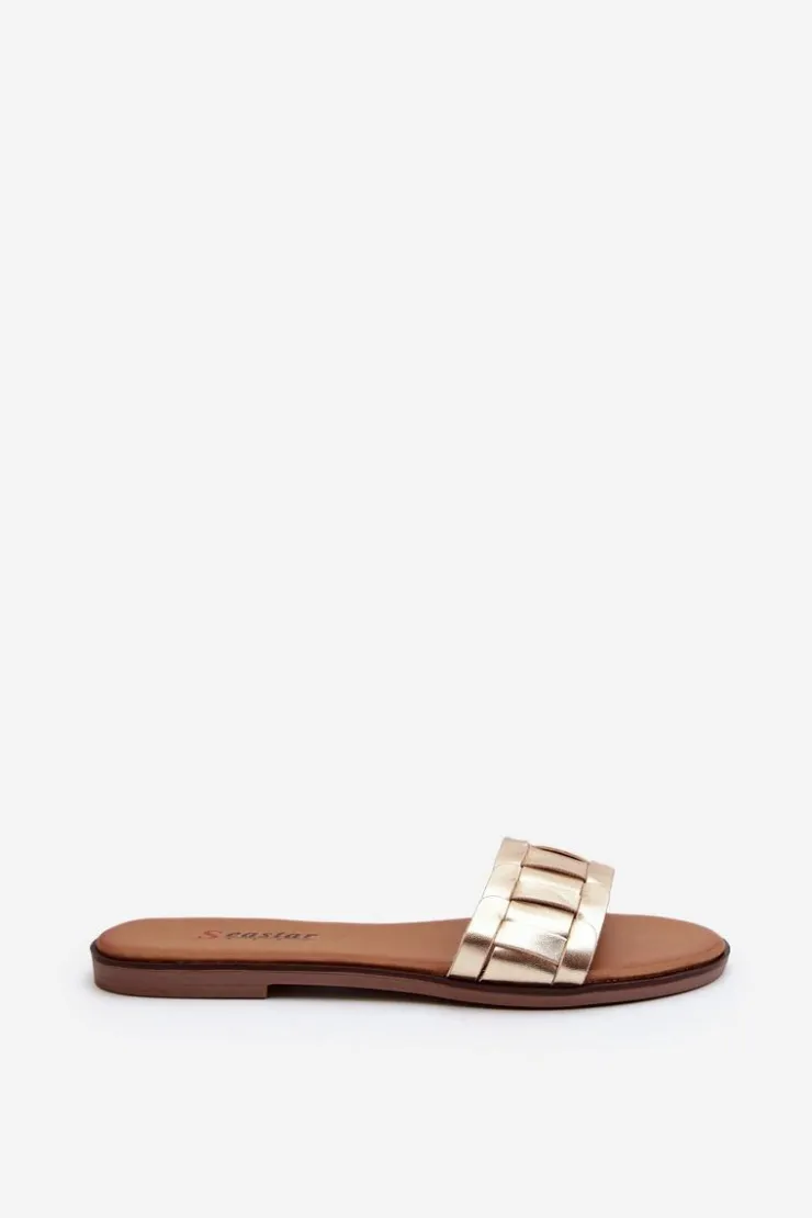 Klapki wykonane z eko skóry. Osadzone na płaskim obcasie. Klasyczny fason idealnie dopełni stylizację z letnimi sukienkami, spodniami i spódnicami. Miękka wkładka z eko skóry zapewni wygodę podczas użytkowania. Koniecznie powinnaś je mieć w swojej letniej garderobie! Przy wyborze rozmiaru prosimy sugerować się tabelą rozmiarów.