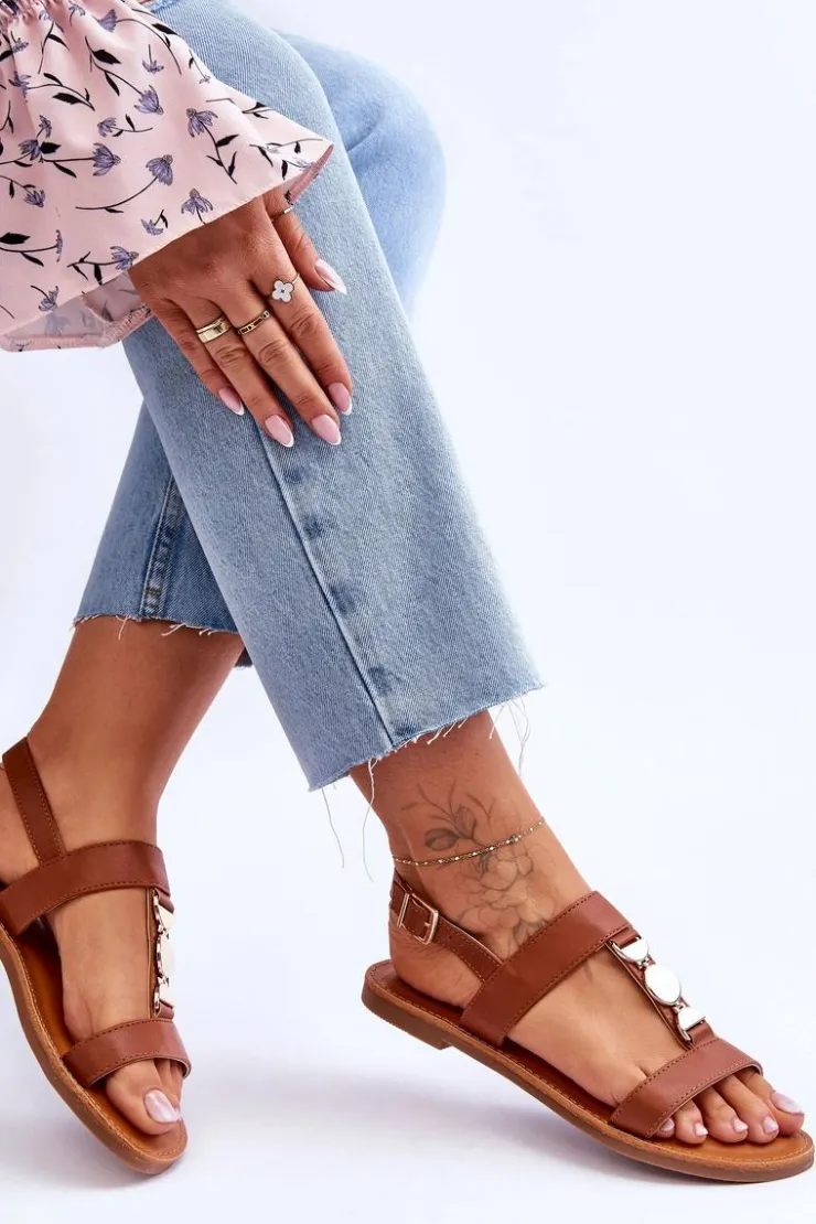 Damskie sandałki zostały wykonane z eko skóry. Model ten posiada zdobienie na paseczku w postaci kół. Sandałki są zapinane na regulowany pasek ze sprzączką. Wygodna wkładka z eko skóry zapewni komfort podczas użytkowania obuwia. Sandałki osadzono na płaskim obcasie z antypoślizgową podeszwą. Przy wyborze rozmiaru prosimy kierować się tabelą rozmiarów.