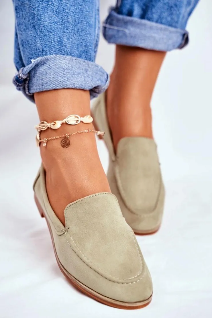 Online Boto Damskie Półbuty Wsuwane Zamszowe Zielone Twinky